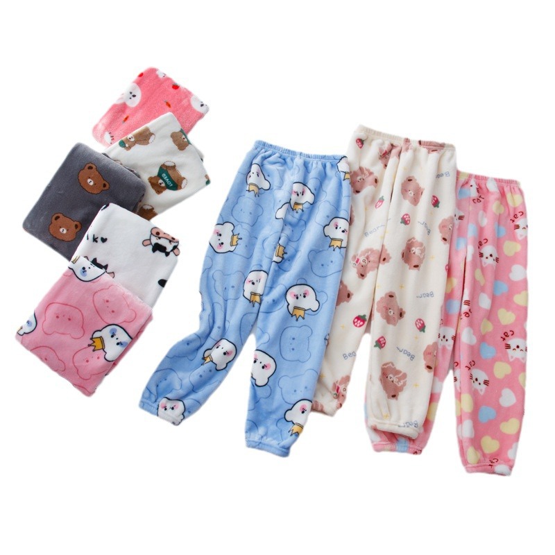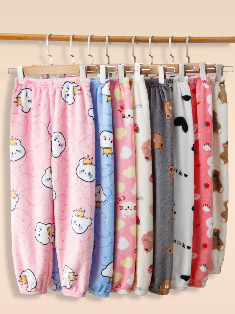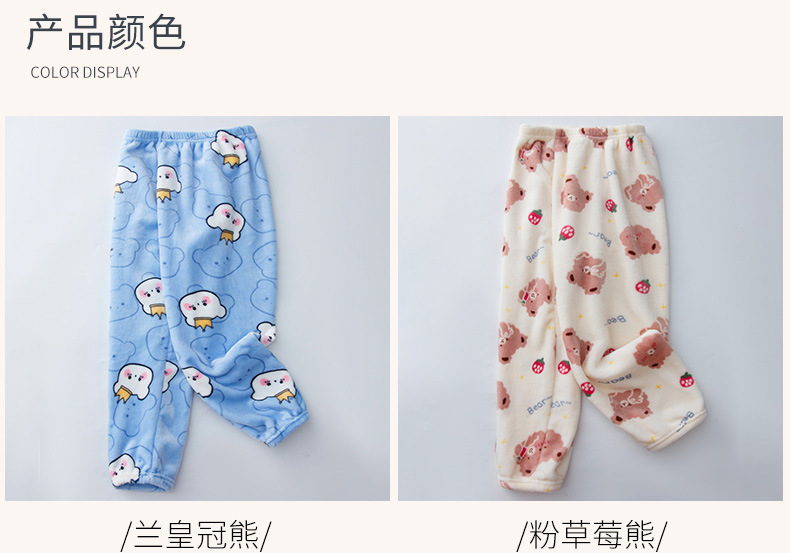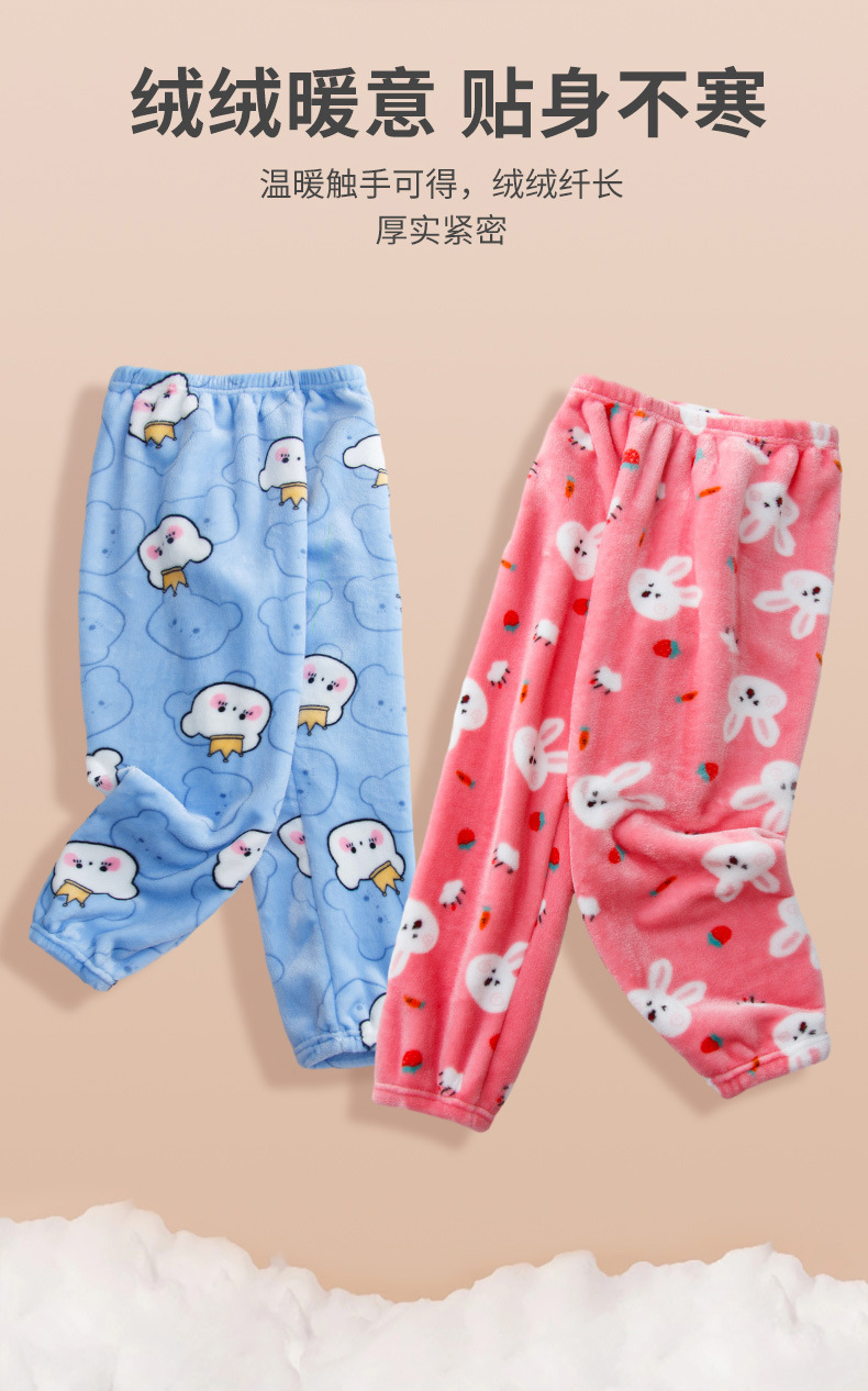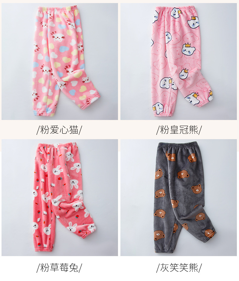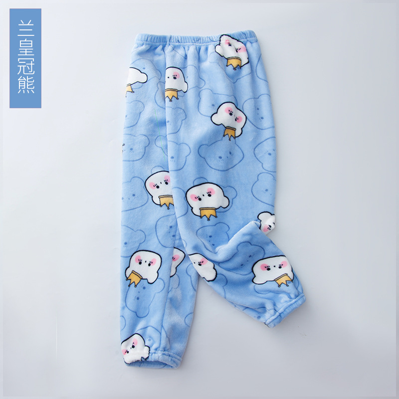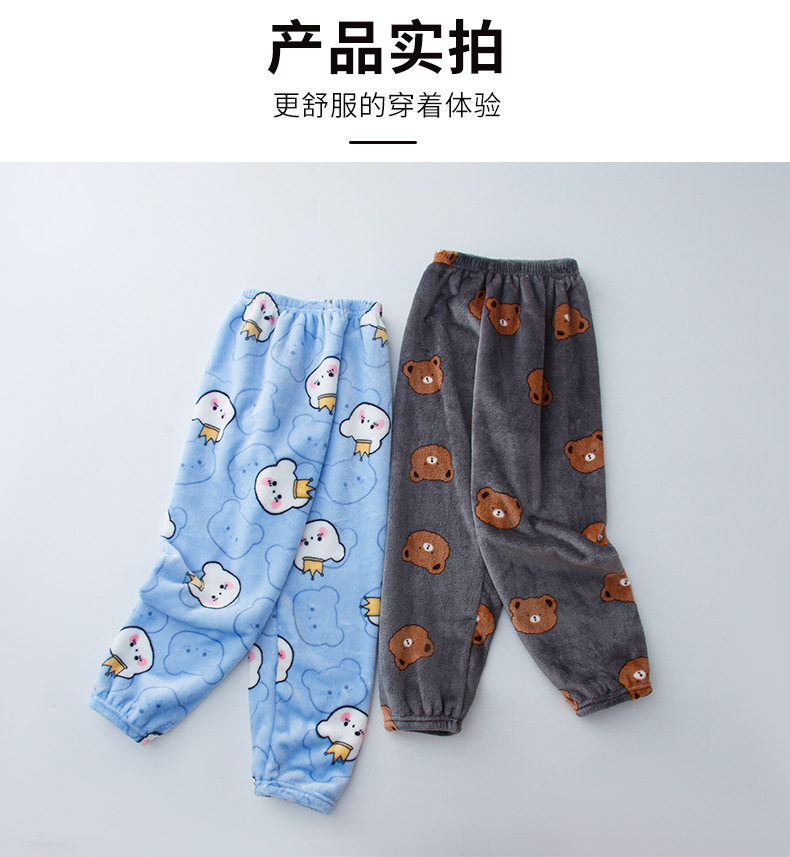 Детские теплые брюки-пижамы Мультяшные милые детские утолщенные фланелевые коралловые бархат на флисовой подкладке осенне-зимний мужской домашний