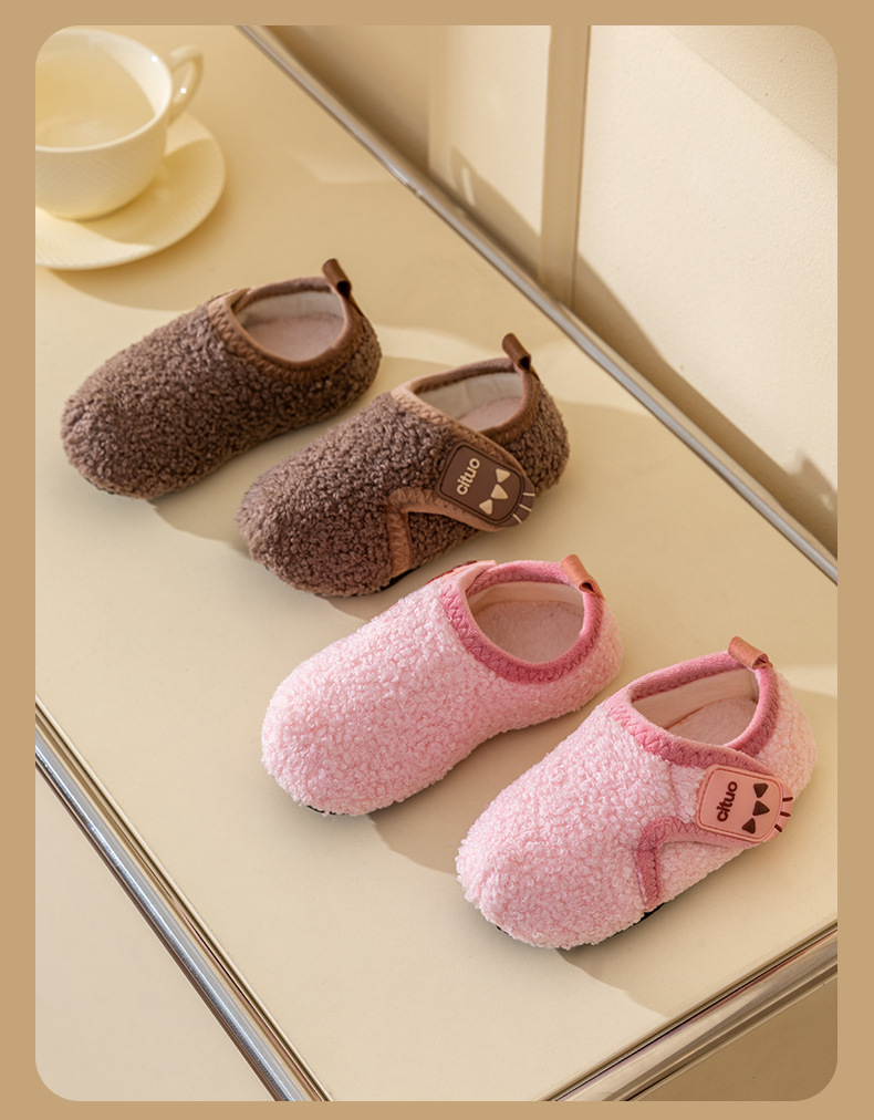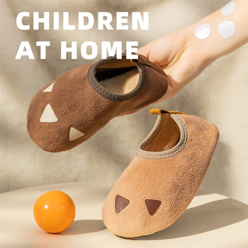 Детские тапочки на толстой подошве, флисовые Нескользящие домашние туфли на мягкой подошве, утолщенные пушистые туфли на флисовой подкладке, Мультяшные крутые напольные носки