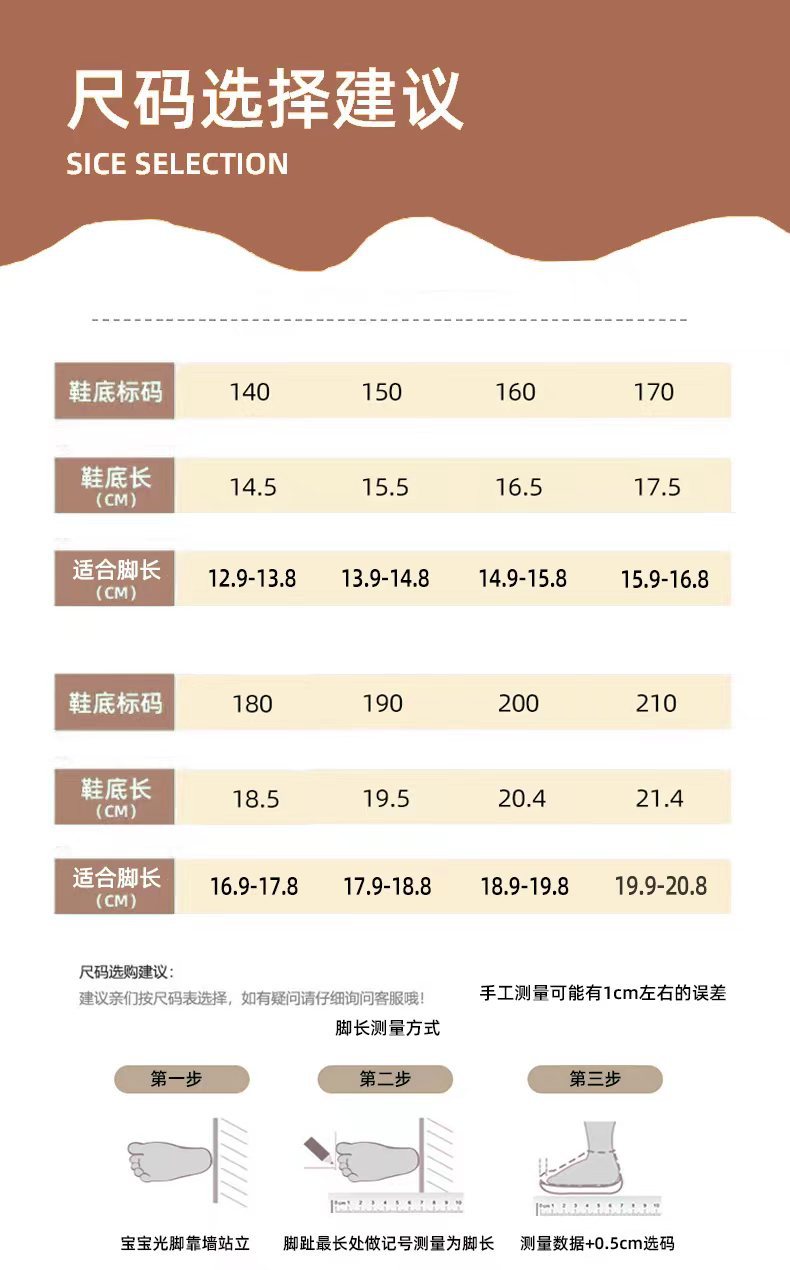 110 мм подходит для ног длиной 10,3-11,3 см.; 120 мм подходит для ног длиной 11,3-12,3 см.; 130 мм подходит для ног длиной 12,3–3,3 см.; 140 подходит для стопы 12,9-13,8 фута.; 150 подходит для ног 13,9-14,8; 160 подходит на ноги 14,9-15,8; 170 подходит для стопы 15,9+16,8; 180 подходит для ног 16,9-17,8; 190 подходит для стопы длиной 17,9-18,8; 200 подходит для стопы длиной 18,9-19,8