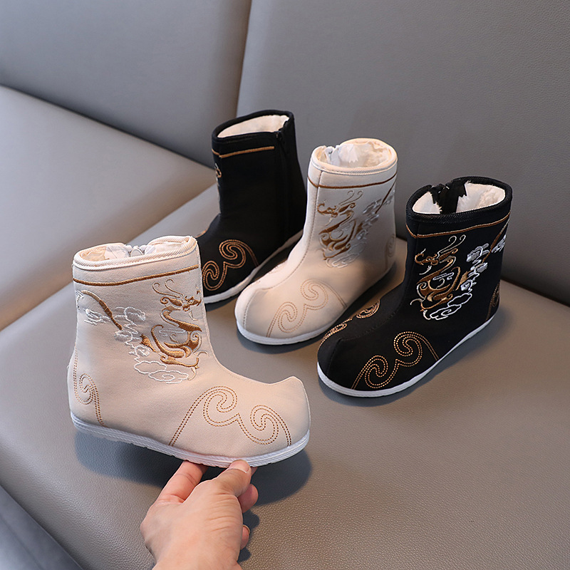 Тканевая обувь Old Beijing Детская вышитая обувь Обувь Hanfu для мальчиков Часы в китайском стиле Весенние и осенние парусиновые ботинки в костюме