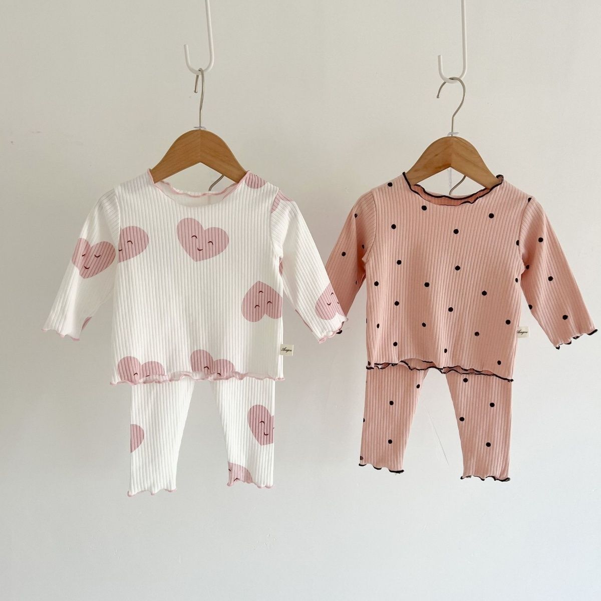 Домашняя одежда для девочек Осенняя новая девочка с длинными рукавами и ребра из ледяного шелка