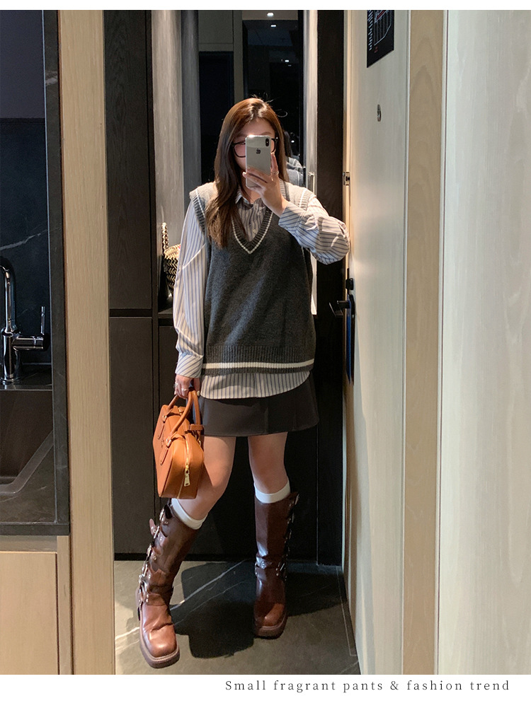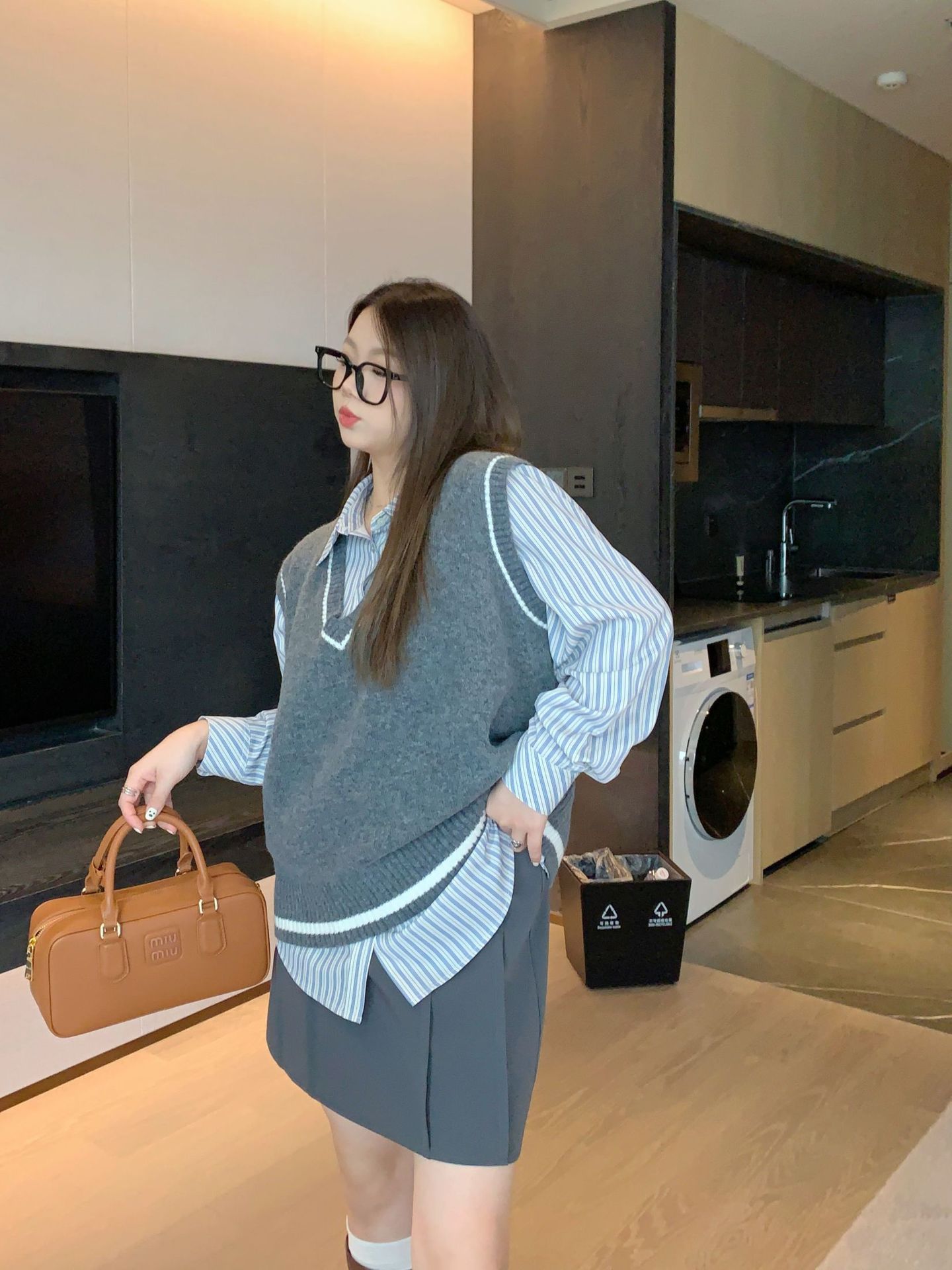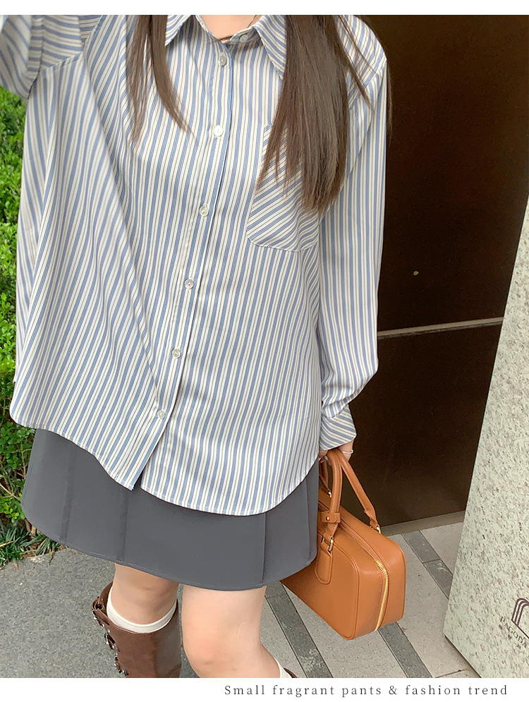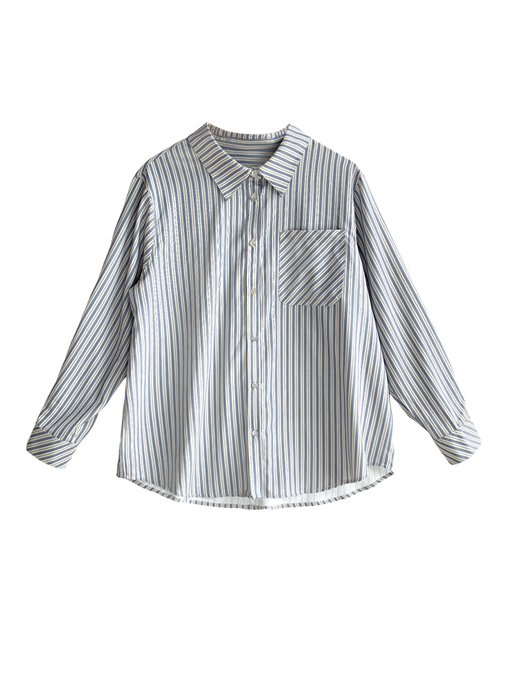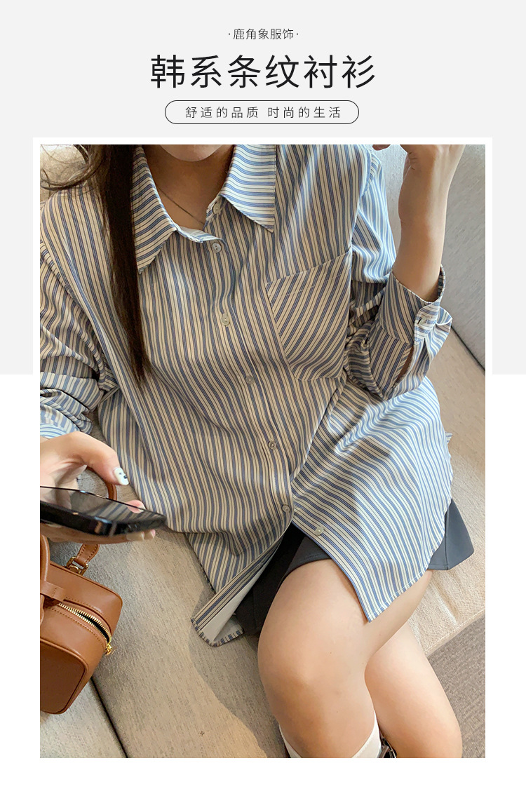 Женская рубашка в полоску в корейском стиле больших размеров, свободная повседневная стильная рубашка с вертикальными полосками, свободного кроя, с длинными рукавами и воротником-поло.
