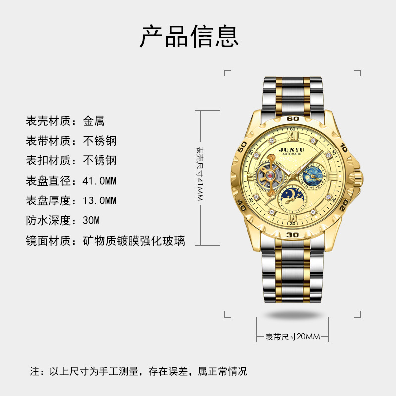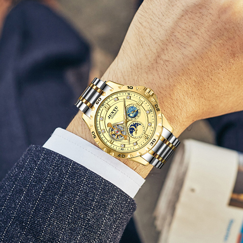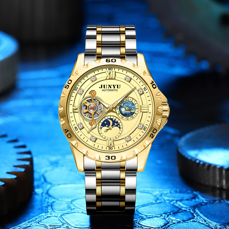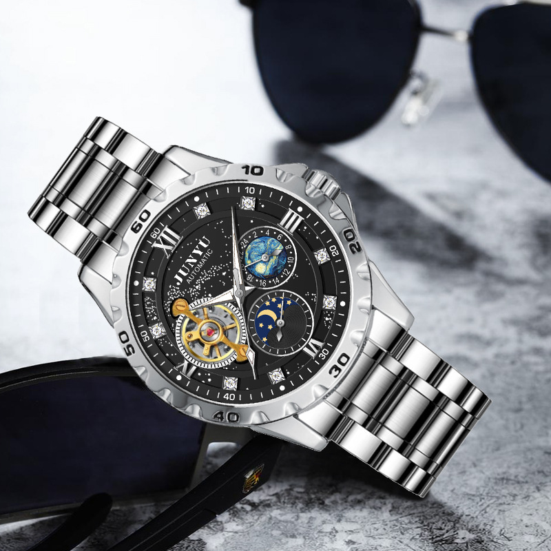 Tiktok популярные мужские часы светящиеся водонепроницаемые автоматические механические часы со стальным ремешком полые многофункциональные звезды JUNYU
