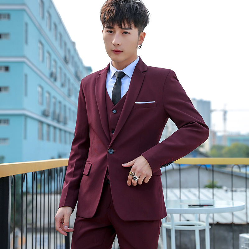 Костюм мужской в британском стиле приталенный мужской однотонный повседневный деловой новый лучший мужской маленький костюм платье-тройка