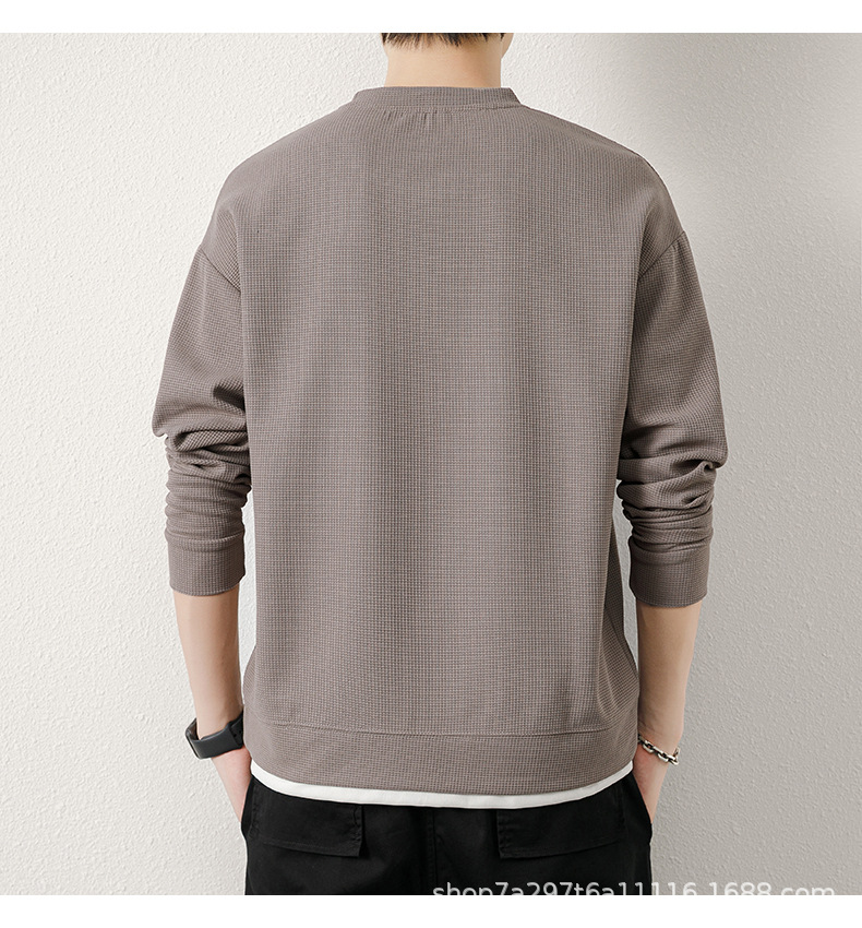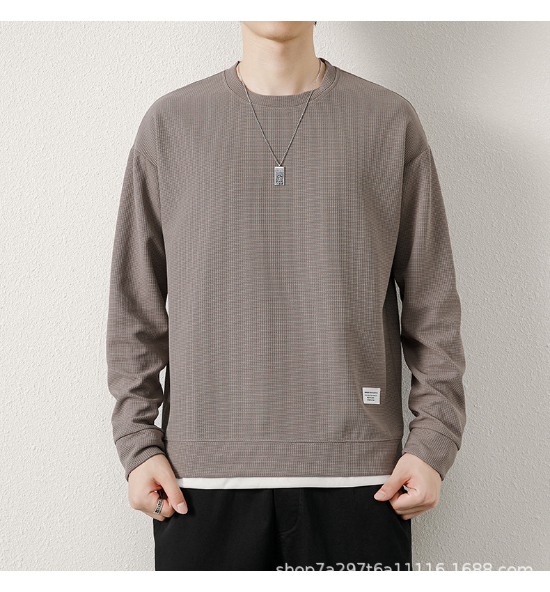 Модный Бренд Вафельный искусственный свитер из двух частей мужской 2023 весна и осень Молодежная свободная футболка с круглым вырезом и длинным рукавом мужская 1