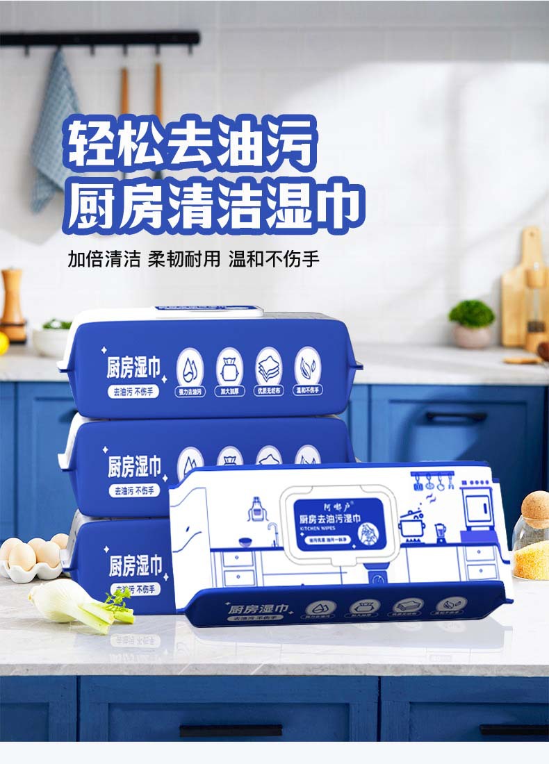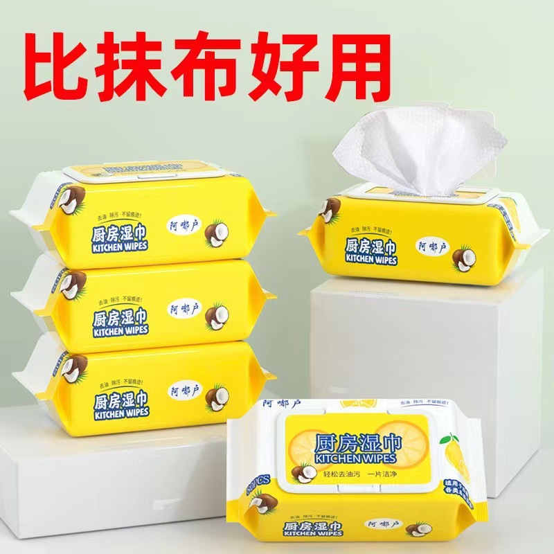 Кухонные влажные салфетки для сильного удаления масляных пятен Влажная папиросная бумага Бытовая одноразовая очистка Диапазон удаления тяжелых масляных пятен Вытяжка Фабрика влажных тканей