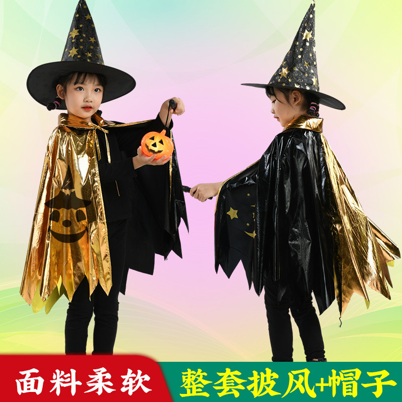 万圣节儿童披风斗篷欧美巫婆巫师魔法师星星帽披风斗篷衣服装扮
