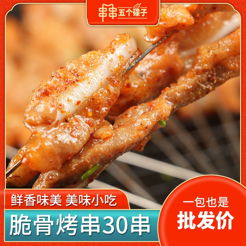 Хрустящий костяной шашлык стальной фирменный барбекю жареные полуфабрикаты коммерческие ингредиенты 30 ниток Пряная маленькая хрустящая кость свинья хрустящая кость маленькая нитка