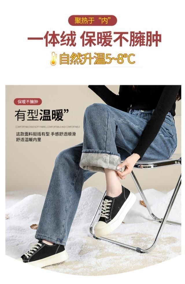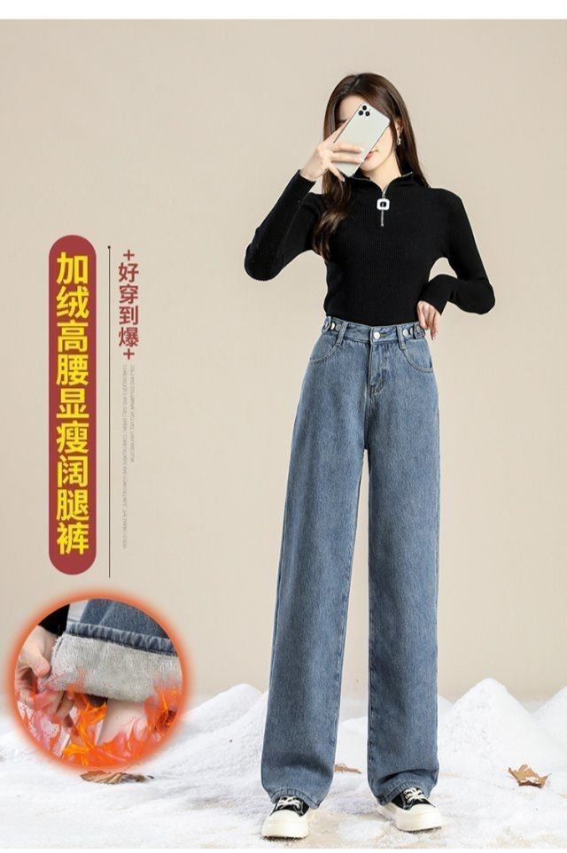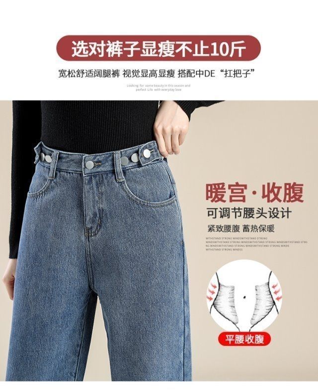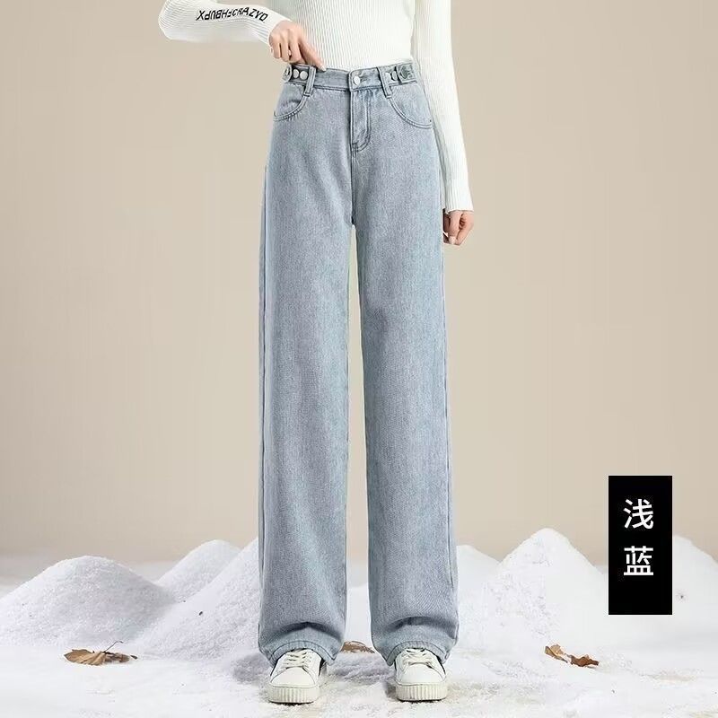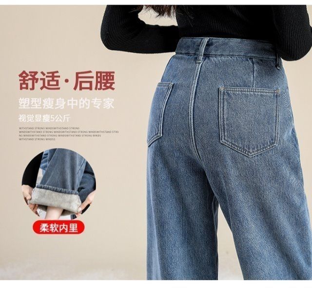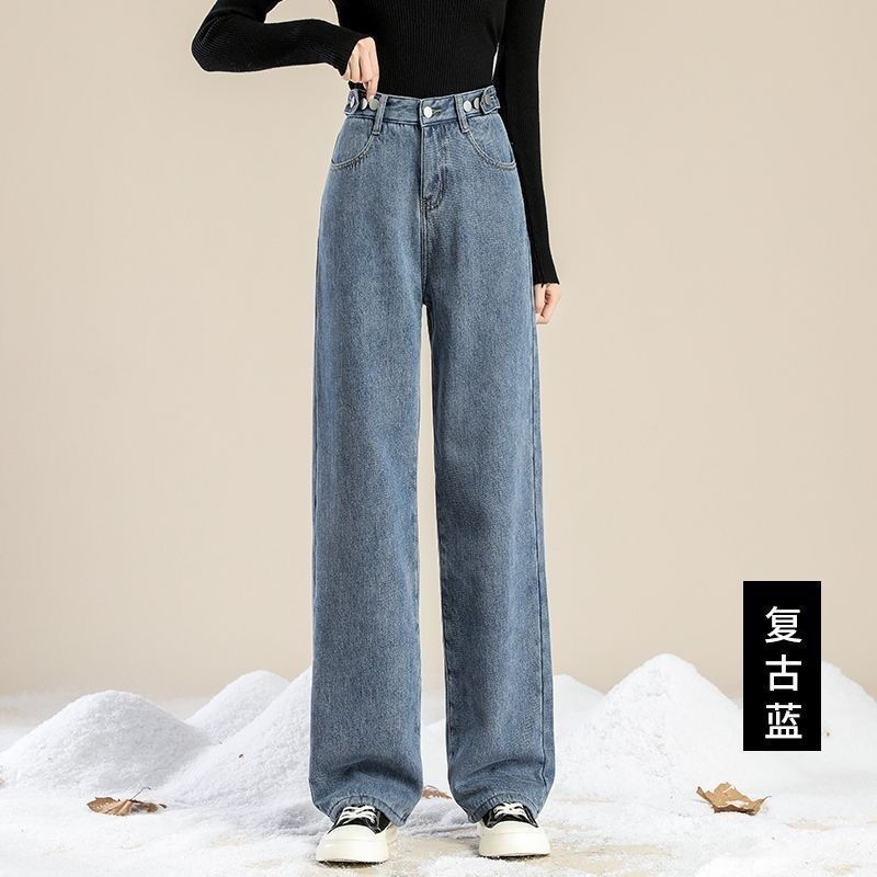 Женские джинсы на флисовой подкладке, новые свободные прямые универсальные облегающие широкие брюки с защитой от холода в студенческом Корейском стиле