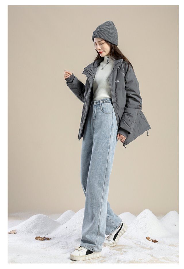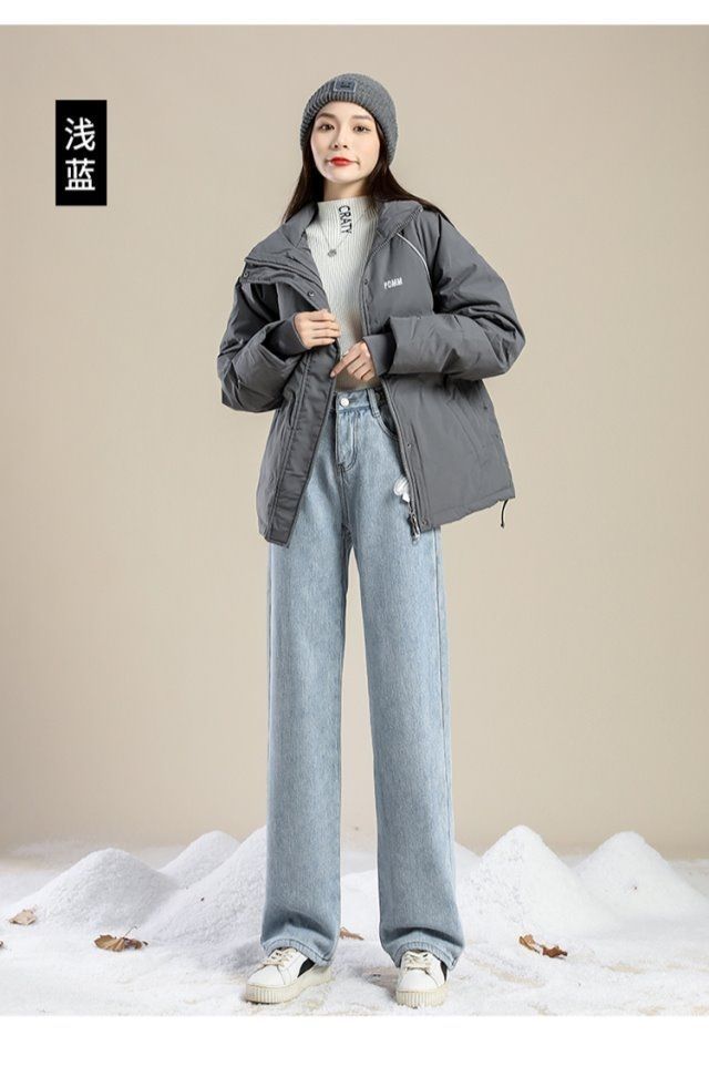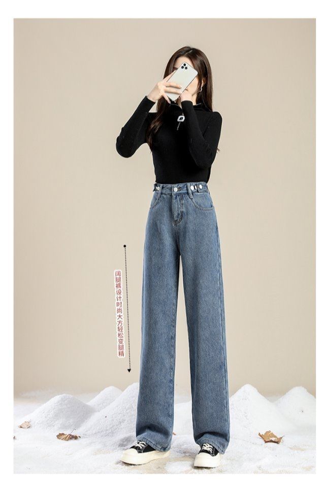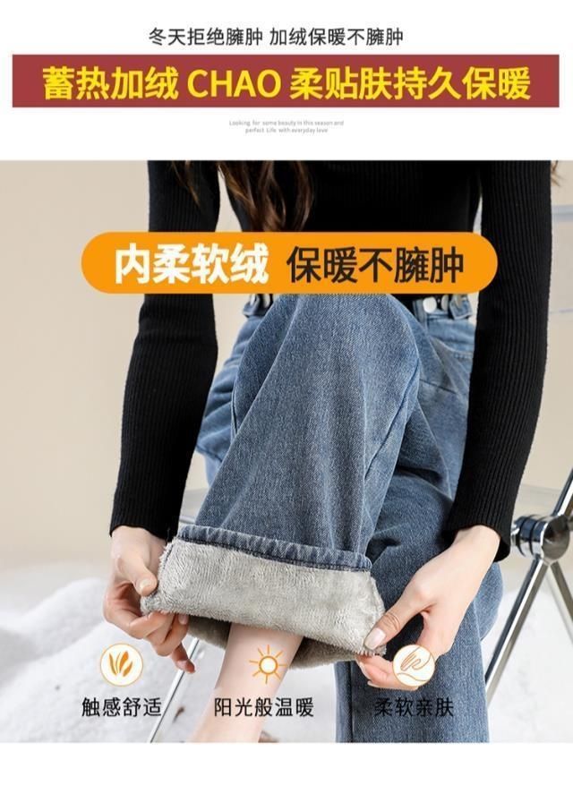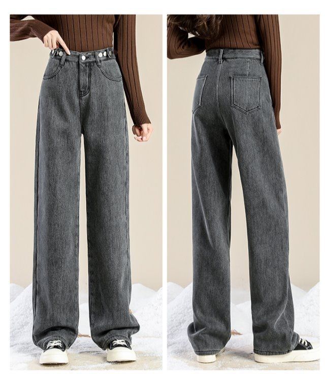 Женские джинсы на флисовой подкладке, новые свободные прямые универсальные облегающие широкие брюки с защитой от холода в студенческом Корейском стиле