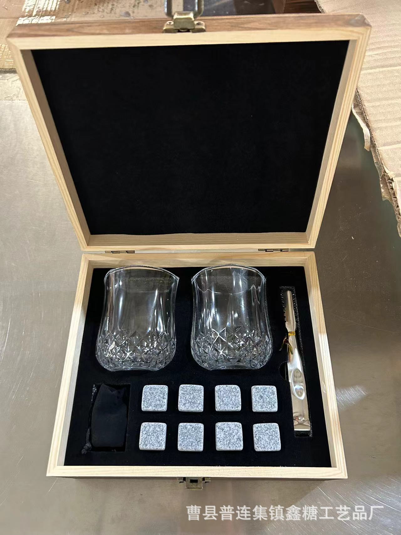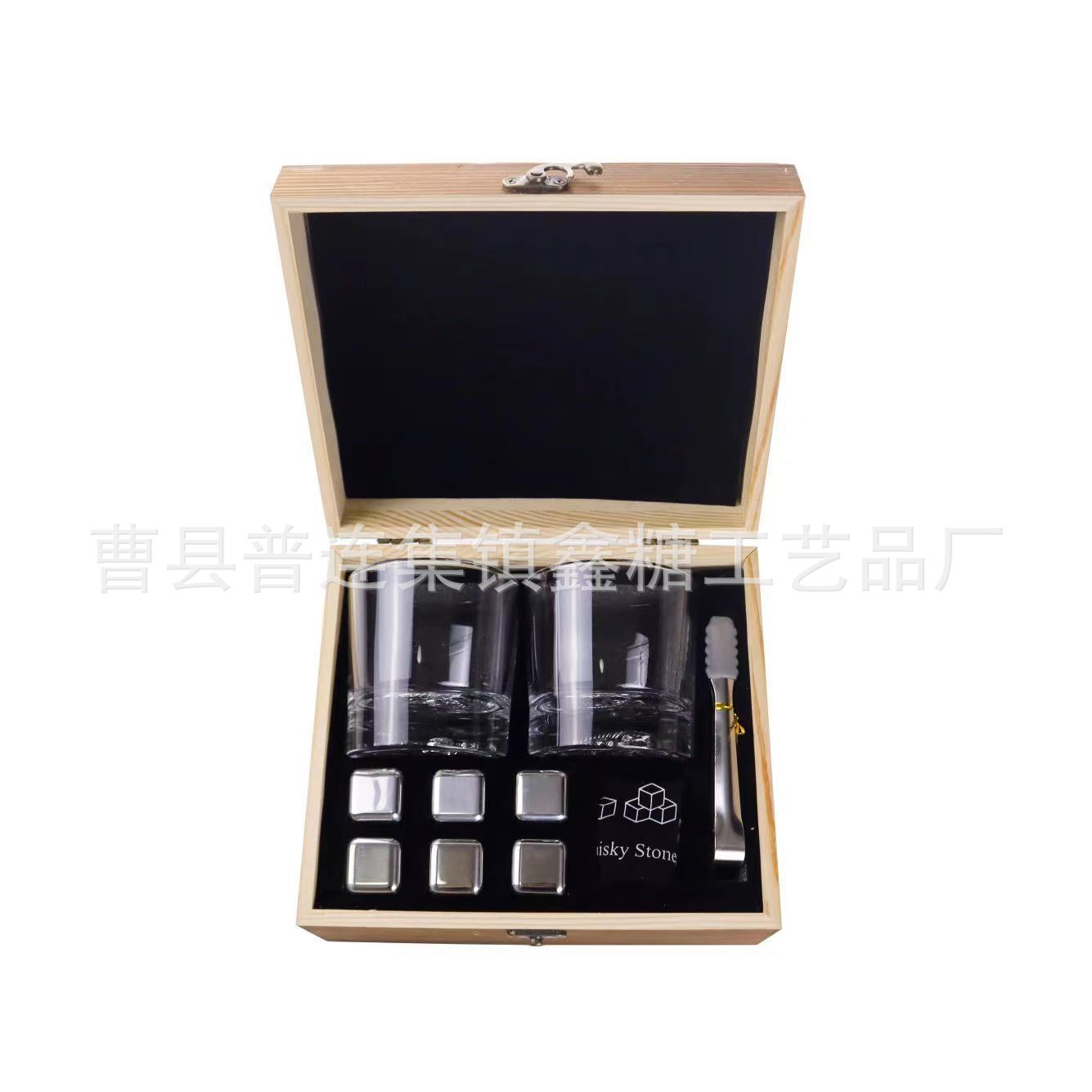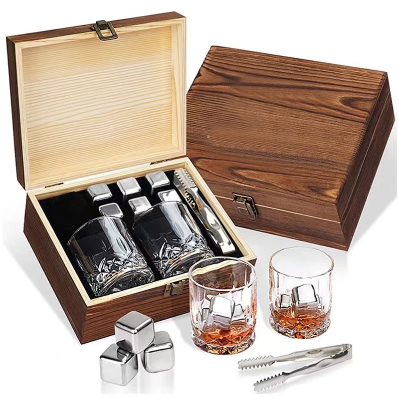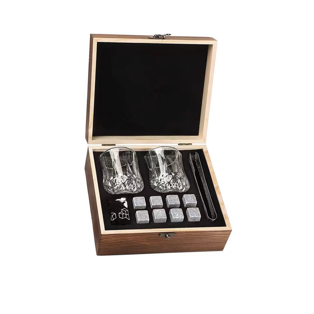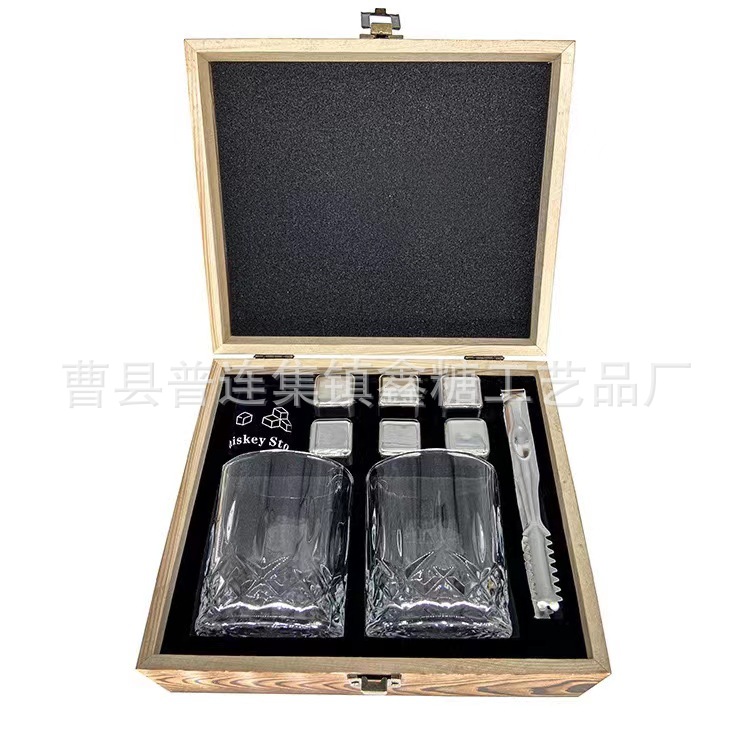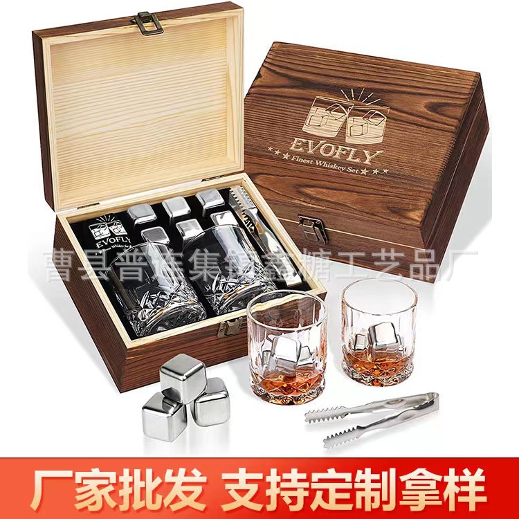 Оптовая продажа: деревянная коробка для упаковки виски Amazon, ретро-коробка для льда и вина, деревянная коробка для двух стаканов, коробка из соснового угля
