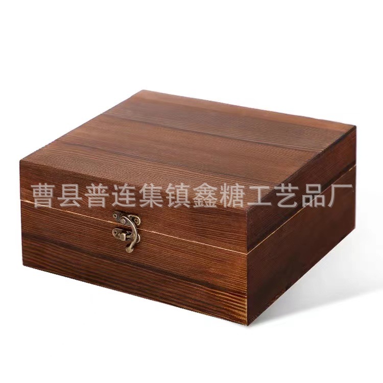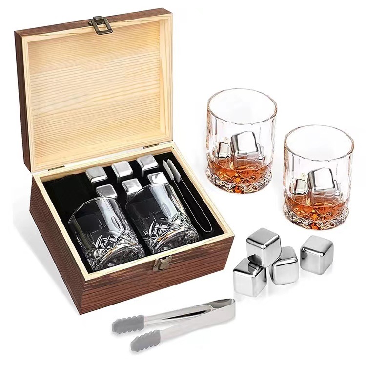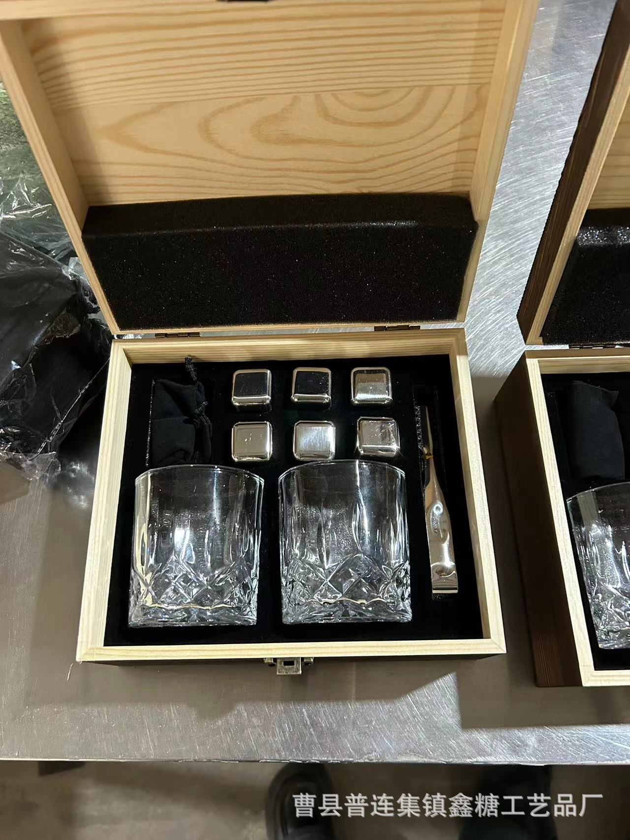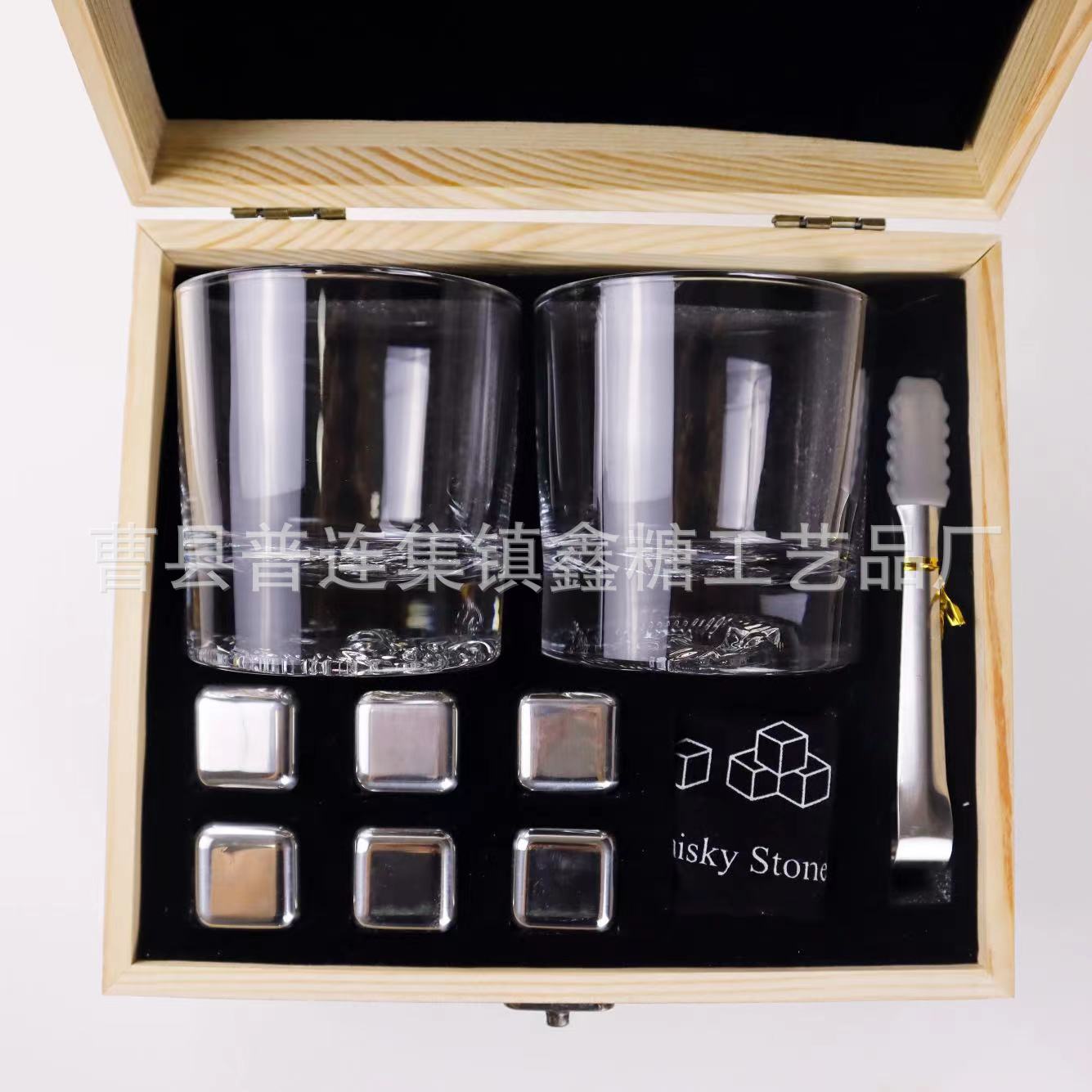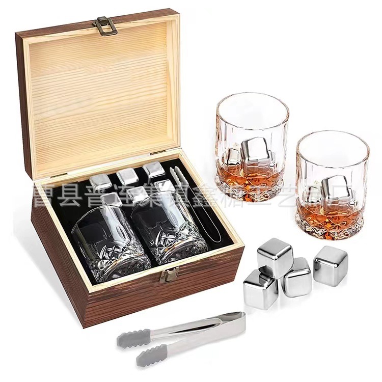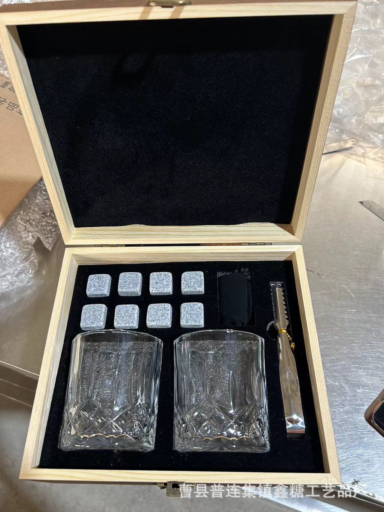 Оптовая продажа: деревянная коробка для упаковки виски Amazon, ретро-коробка для льда и вина, деревянная коробка для двух стаканов, коробка из соснового угля