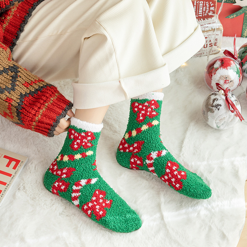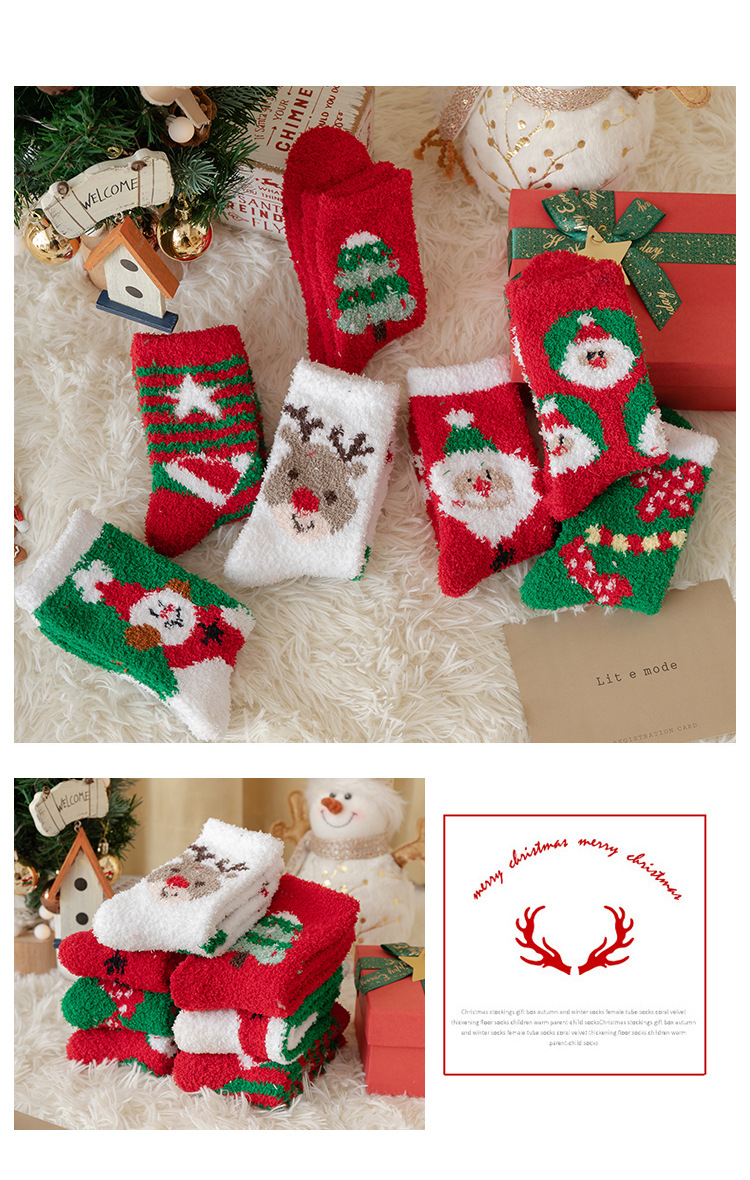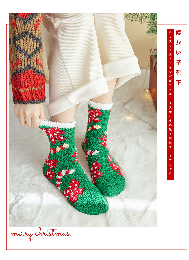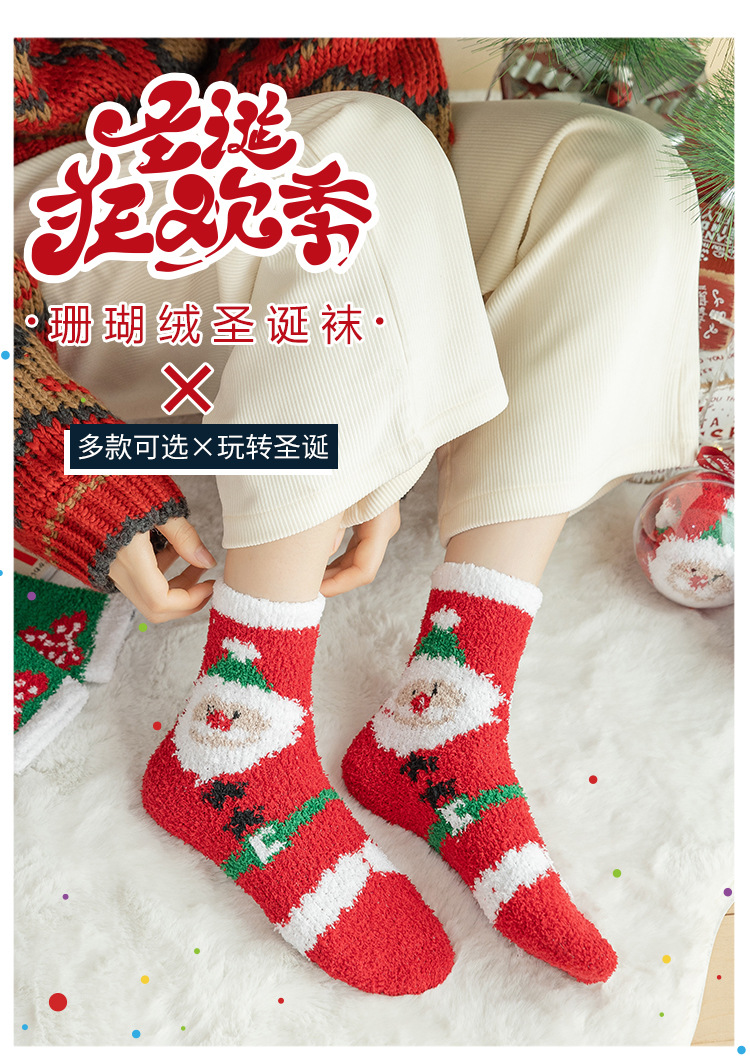 Осенне-зимний Рождественский чулок утолщенный чулок из кораллового флиса Санта-Лось домашний праздничный чулок для сна средней длины