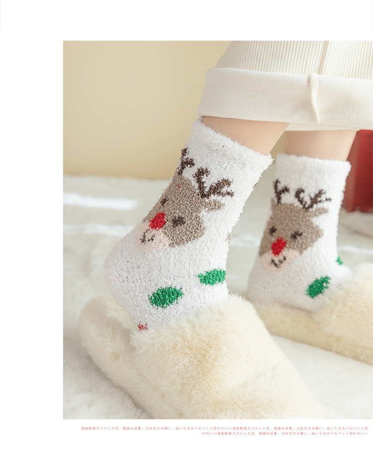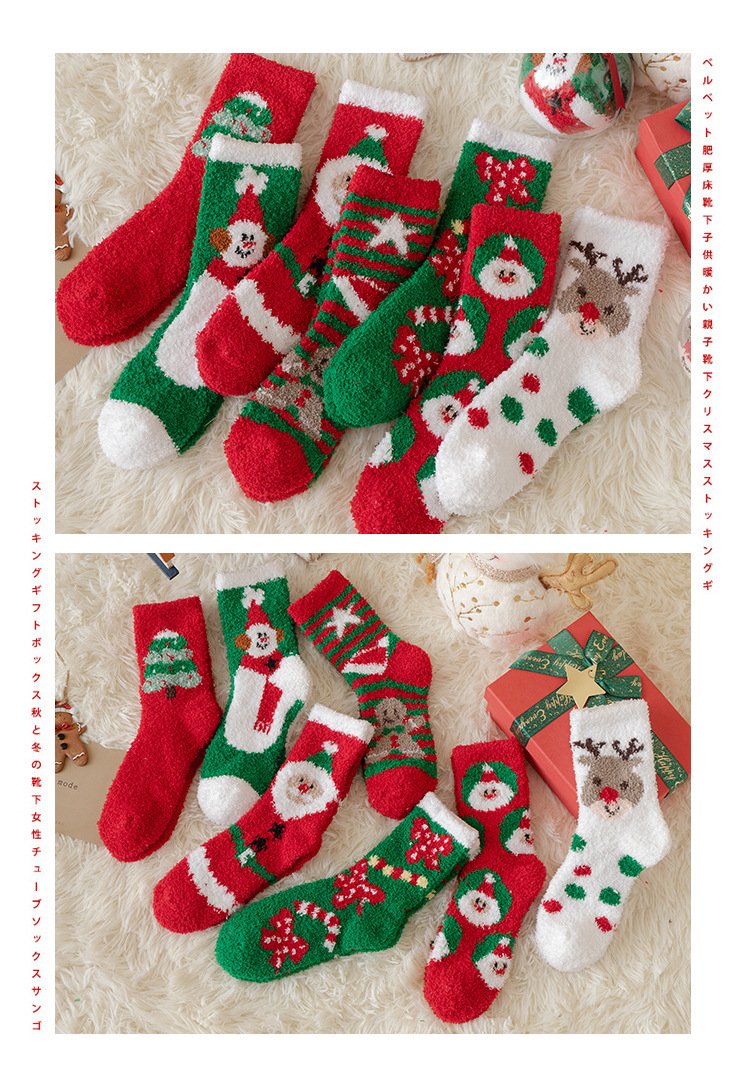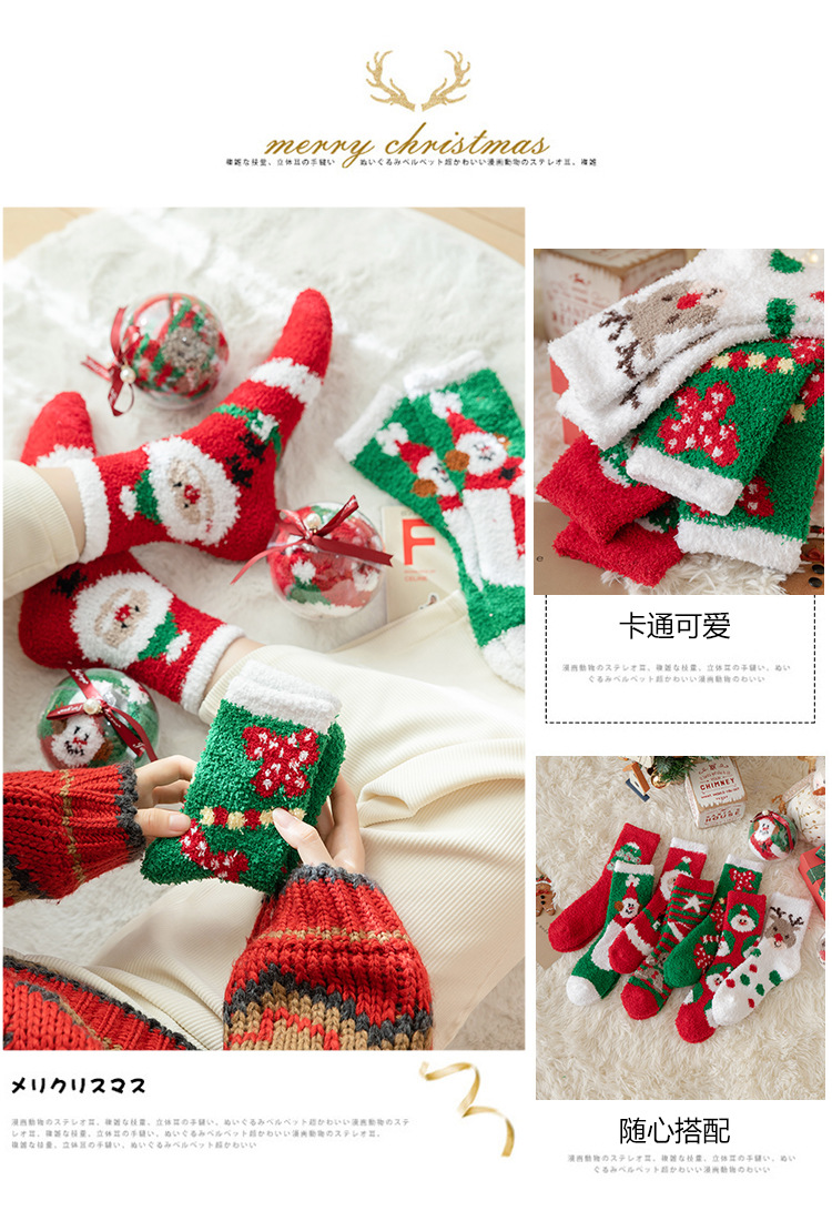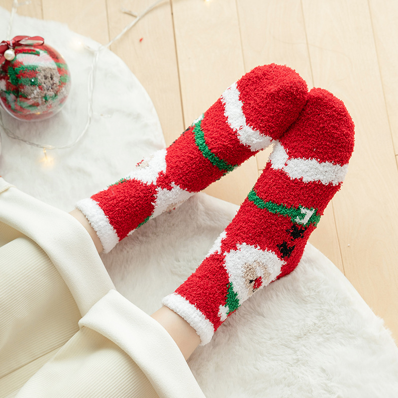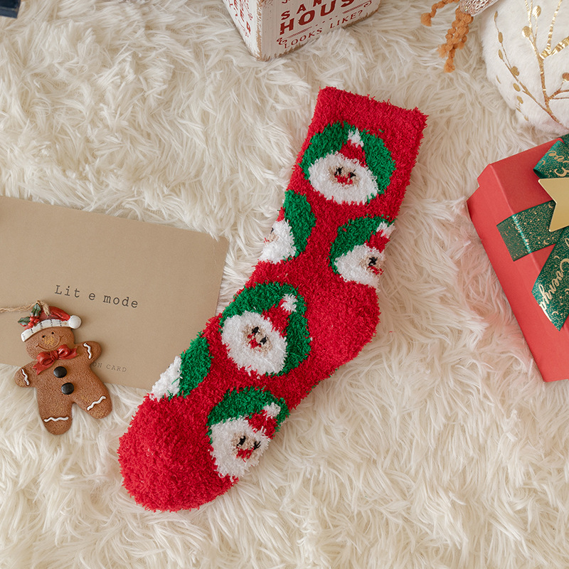 Осенне-зимний Рождественский чулок утолщенный чулок из кораллового флиса Санта-Лось домашний праздничный чулок для сна средней длины