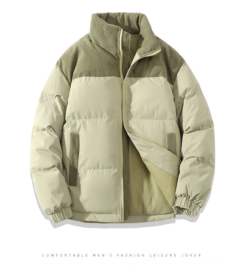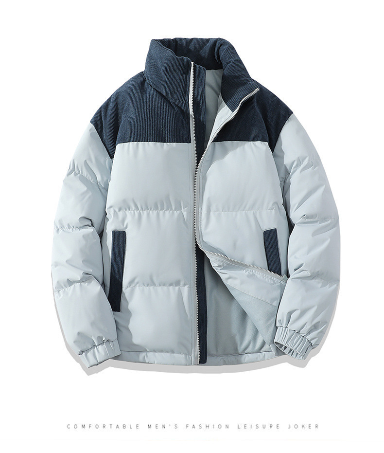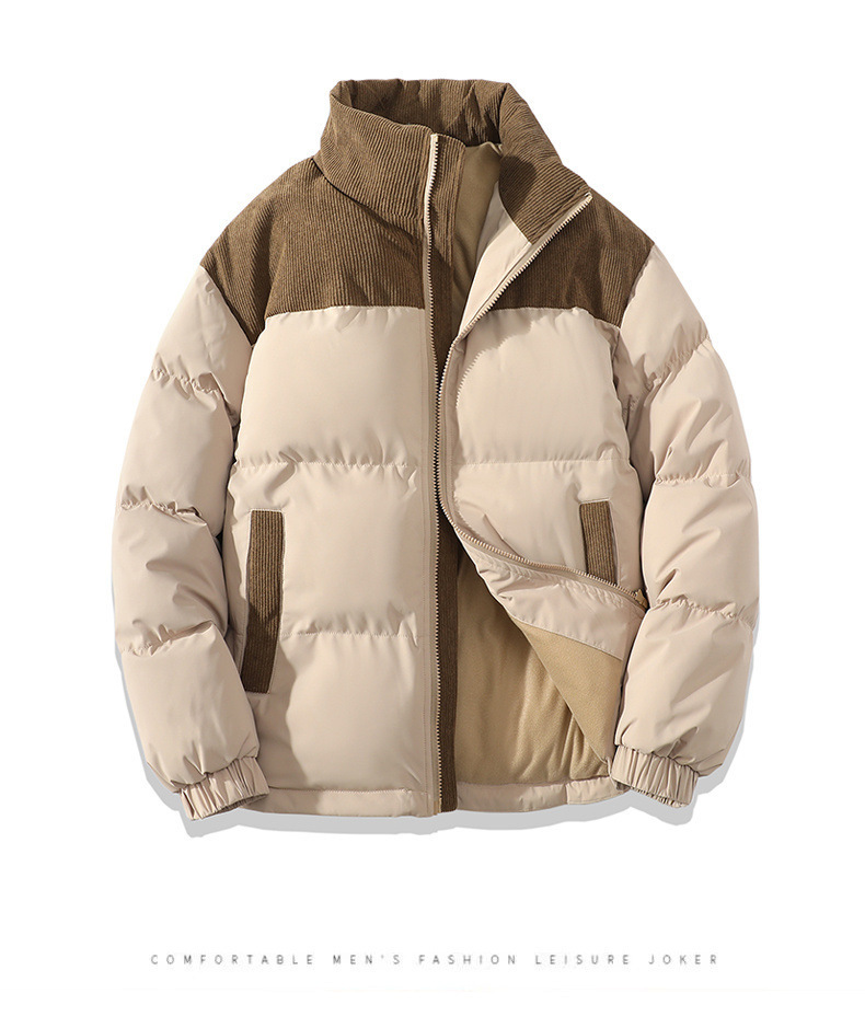 Новая осенне-зимняя мужская куртка из корейского хлопка 2023 года, модный бренд, с цветовыми блоками, стильная, свободного кроя, утепленная куртка-пуховик, утолщенное хлопковое пальто.