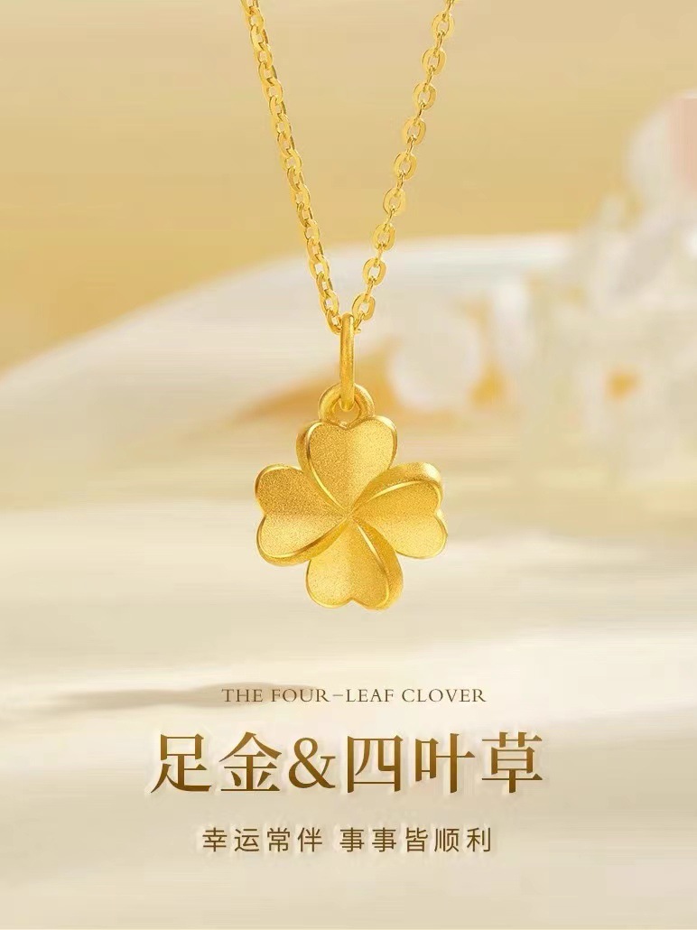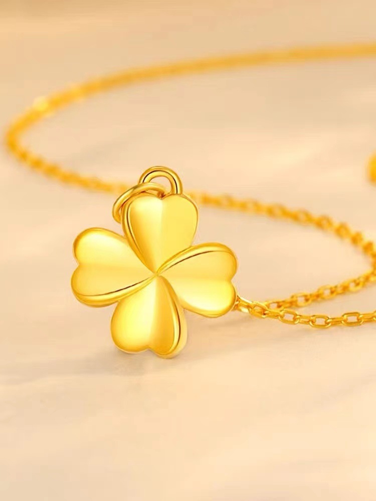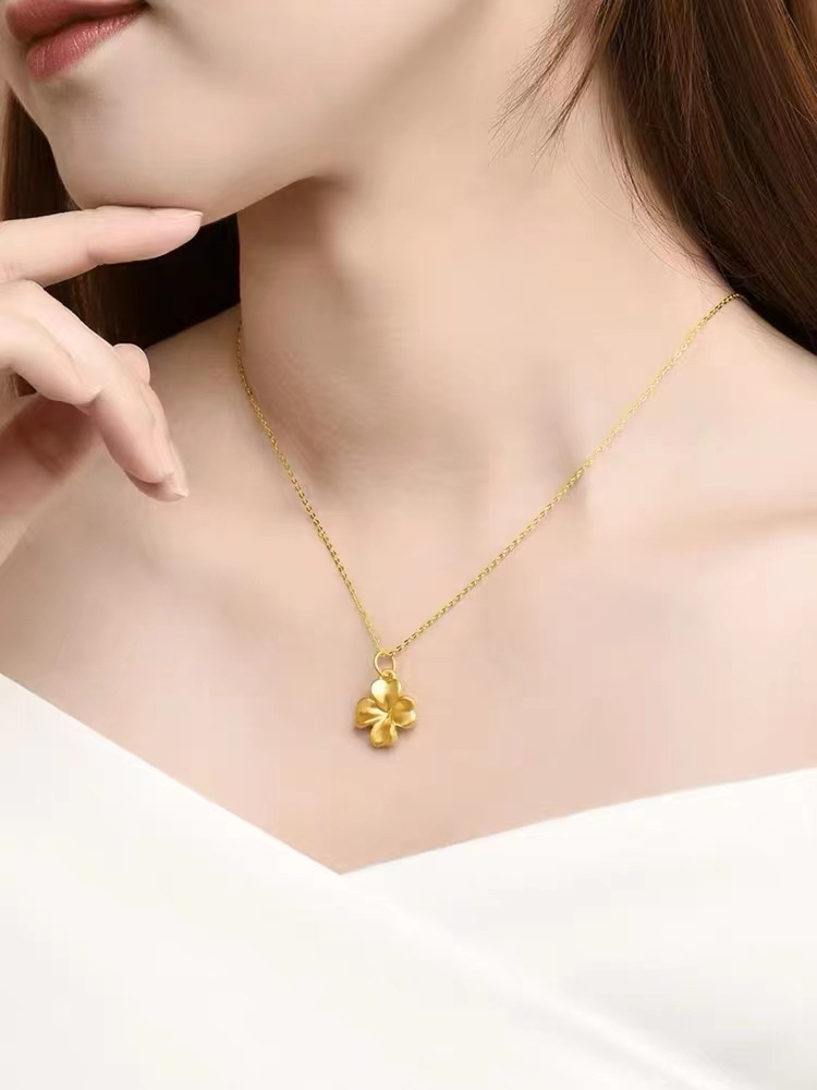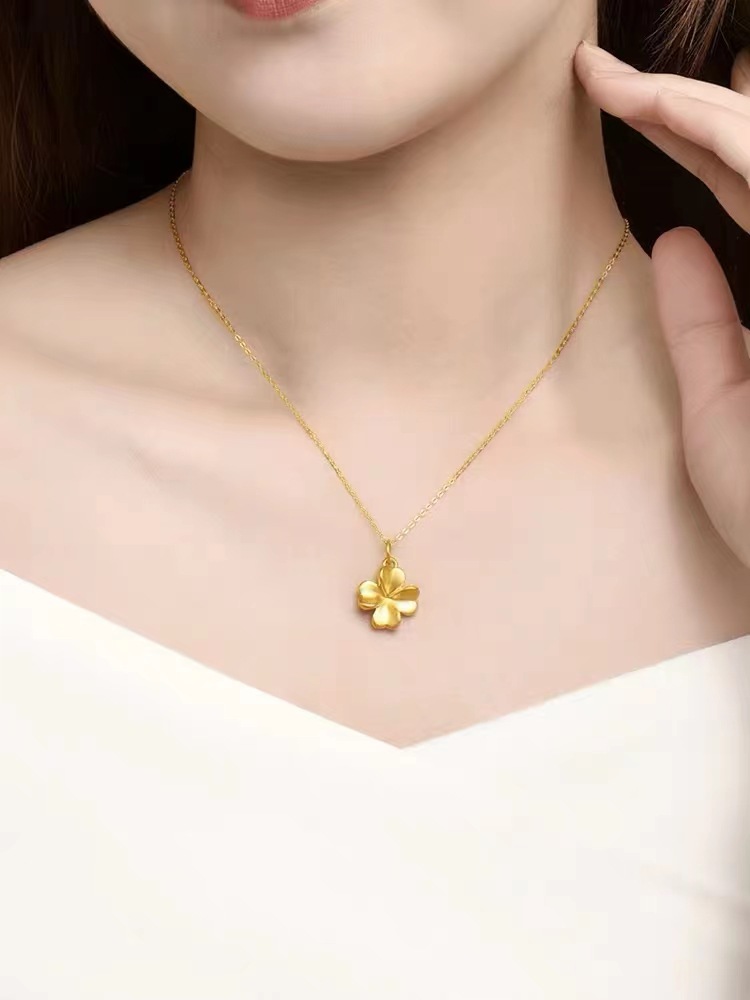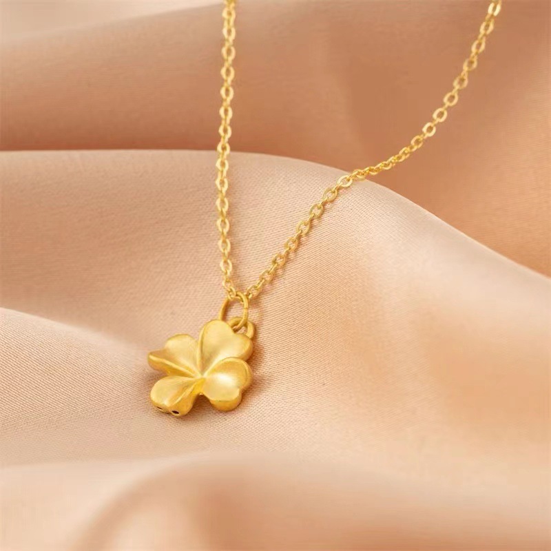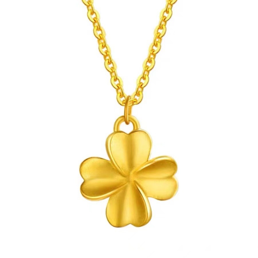 Золотой 999 Золотой четырехлистный клеверный кулон 3D ТВЕРДОЕ ЗОЛОТО транспортная трава ожерелье женский кулон подарок живой дренаж оптом