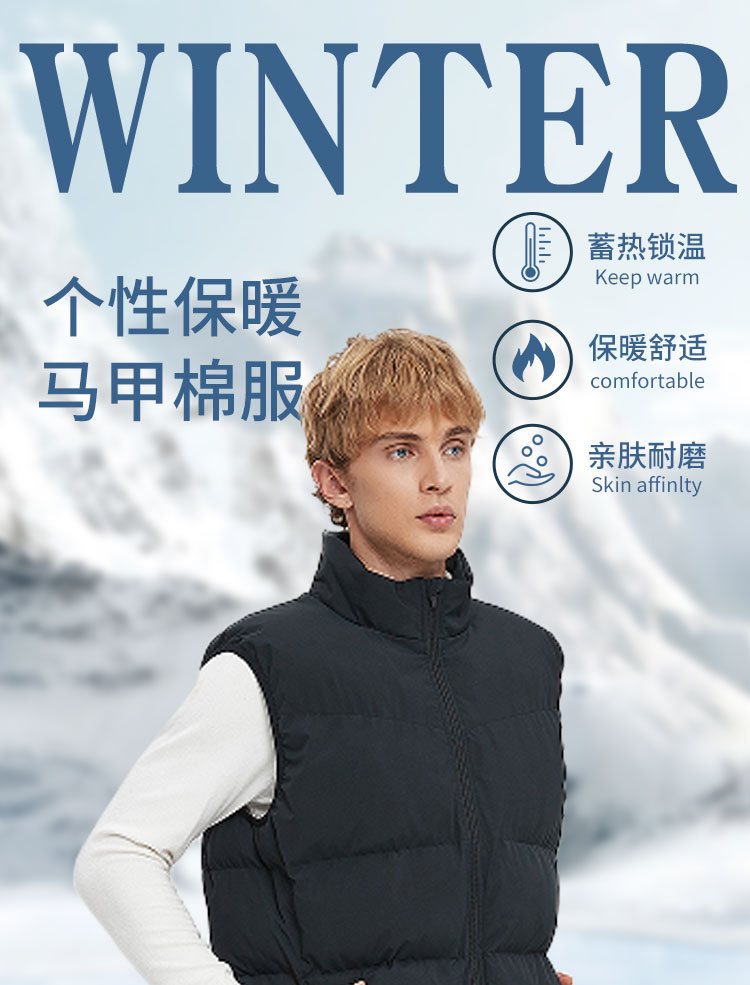 Трансграничный спортивный пуховик с хлопковой подкладкой, жилет, мужской утолщенный жилет, зимние тренировочные спортивные студенческие художественные тестовые жилеты, куртка