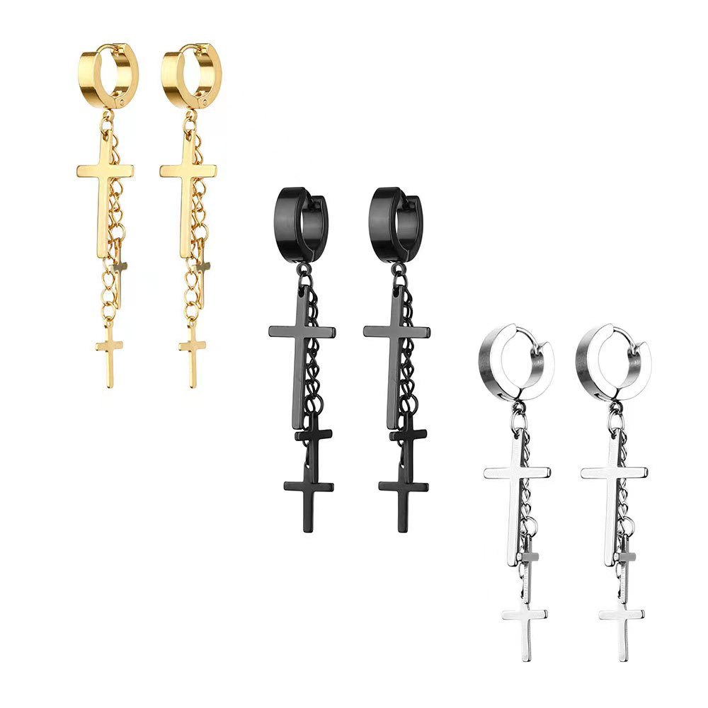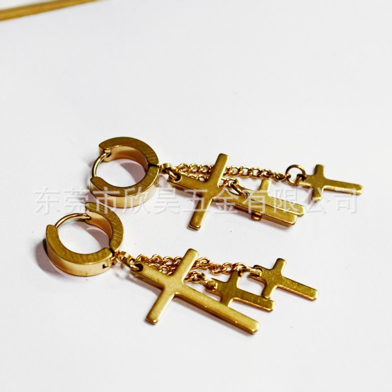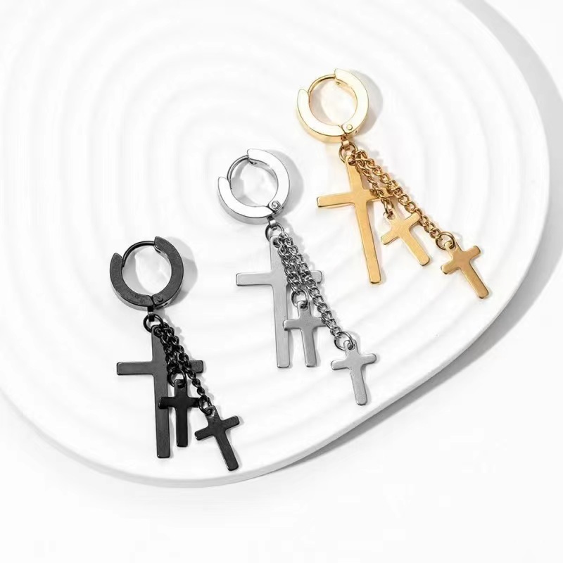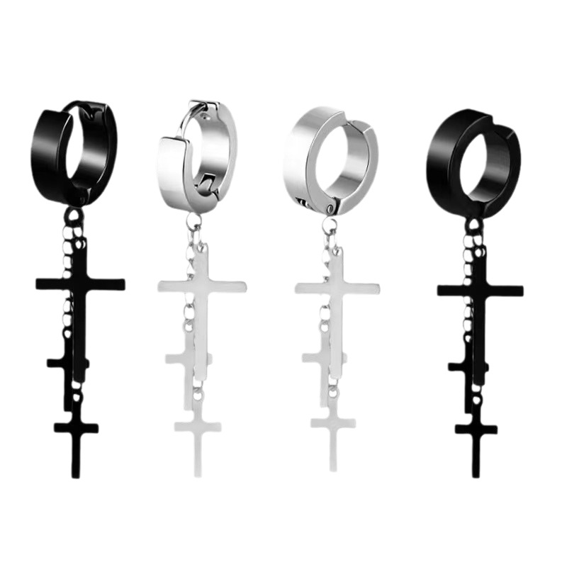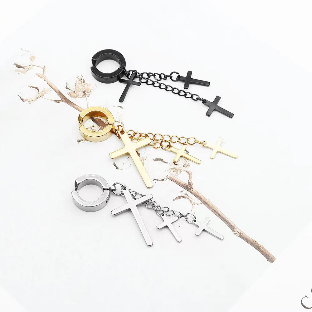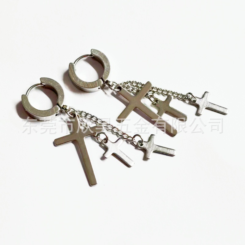 Мелкие оптовые цепочки для сережек из нержавеющей стали с зажимами для ушей без проколов, серьги с крестиками, в стиле панк.