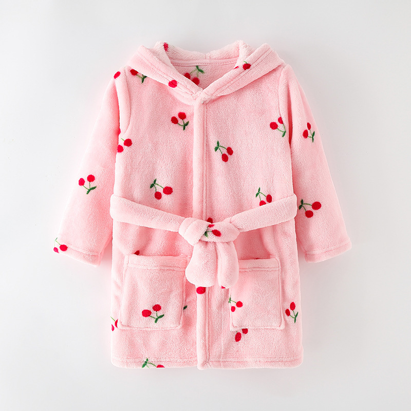 Детский фланелевый Халат с принтом для мальчиков и девочек, домашняя одежда с капюшоном, Детские осенне-зимние пижамы, теплые банные полотенца, детская одежда