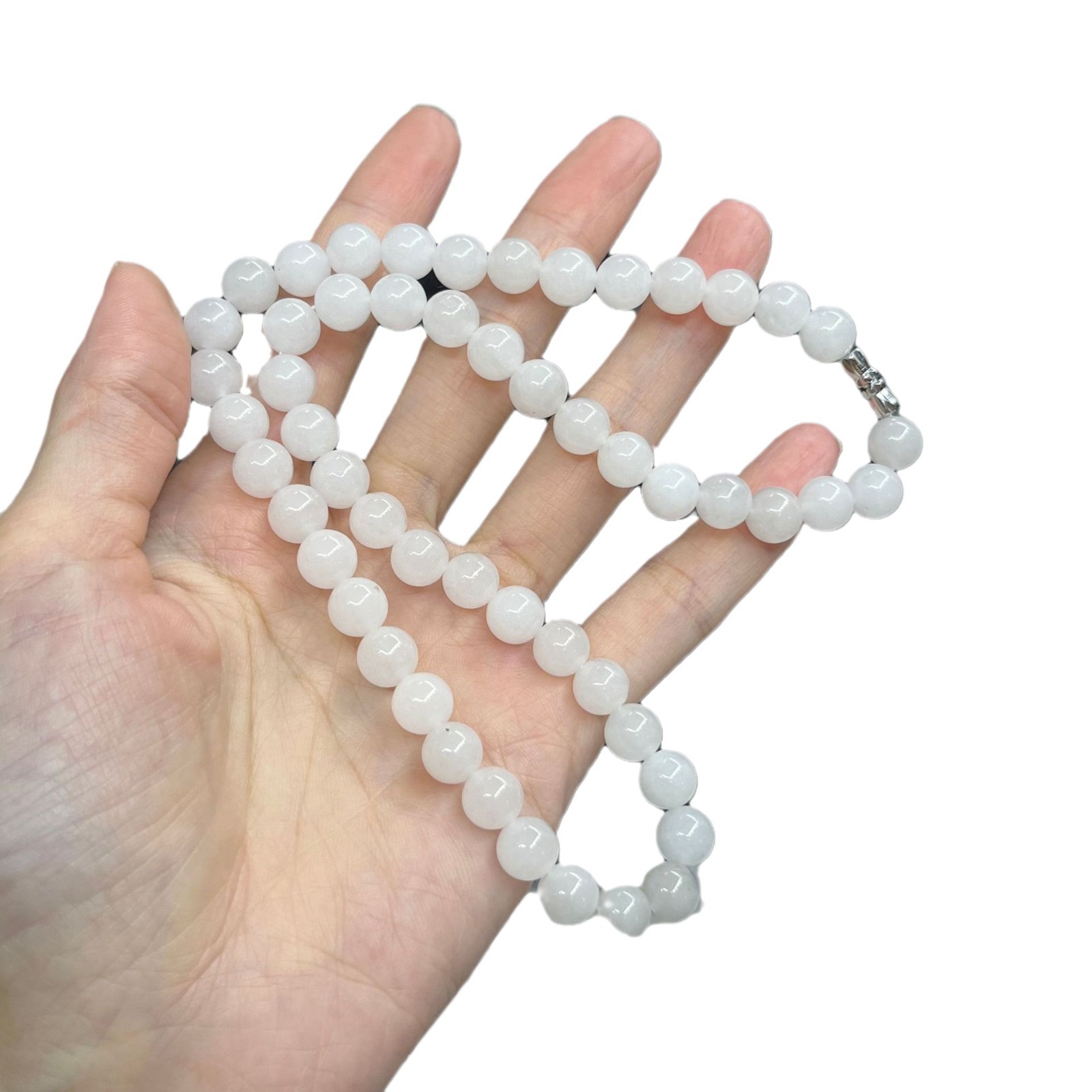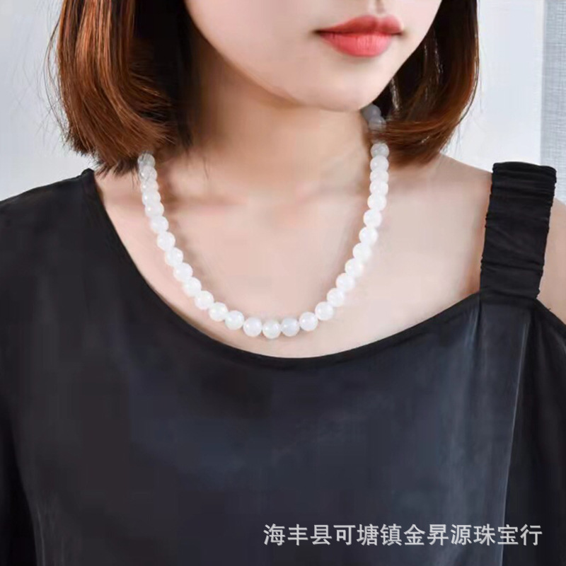天然新疆和田羊脂白金丝玉女士圆珠项链玉石玉器厂家批发直播福利 批发量越大价格越低,可供直播间长期合作,欢迎来电私聊