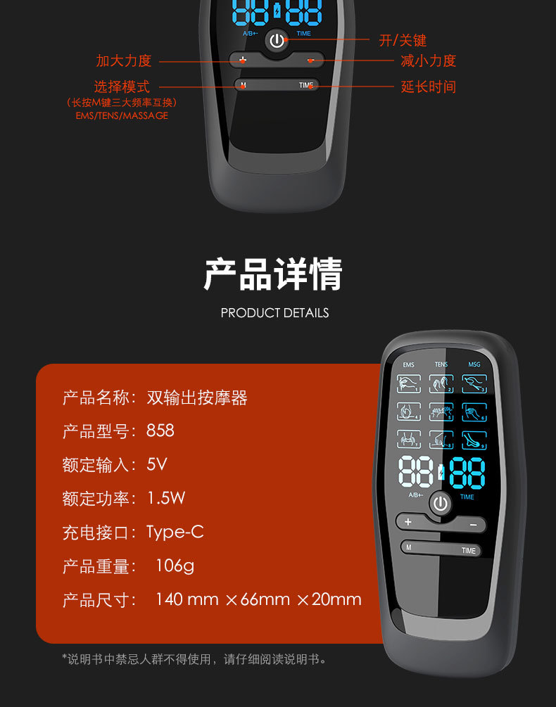 Зарядка двойной выход 858 массажер TENS/EMS новый умный