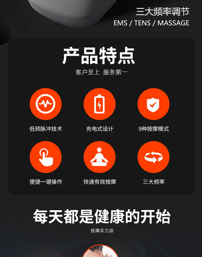 9种按摩模式,30档力度选择。