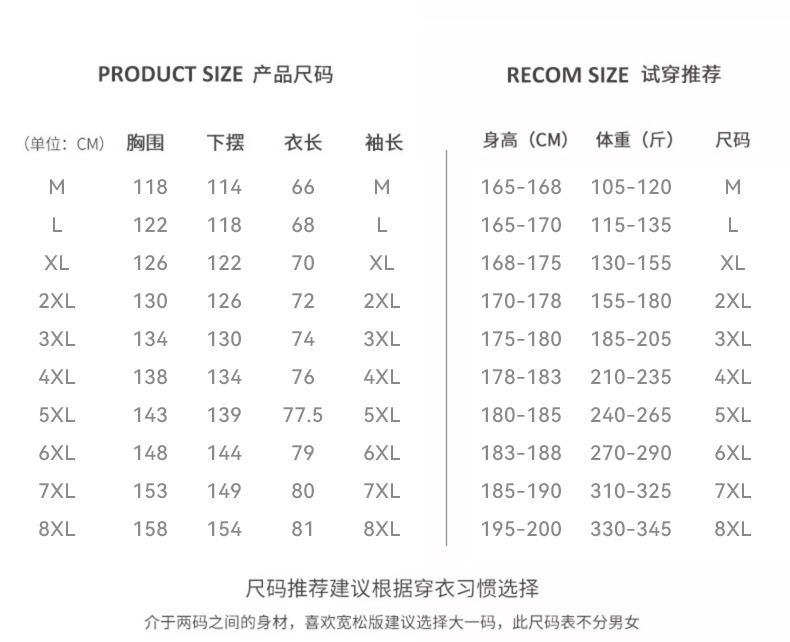 M; L; XL; 2XL; 3XL; 4XL; 5XL; 6XL; 7XL; 8XL
