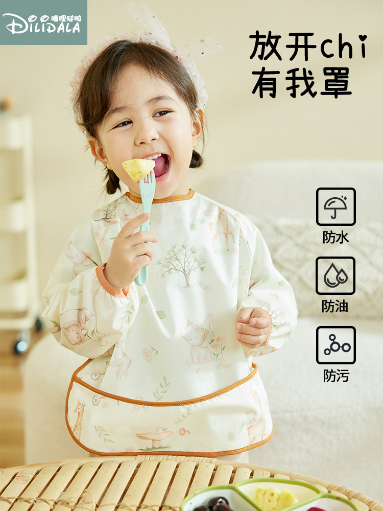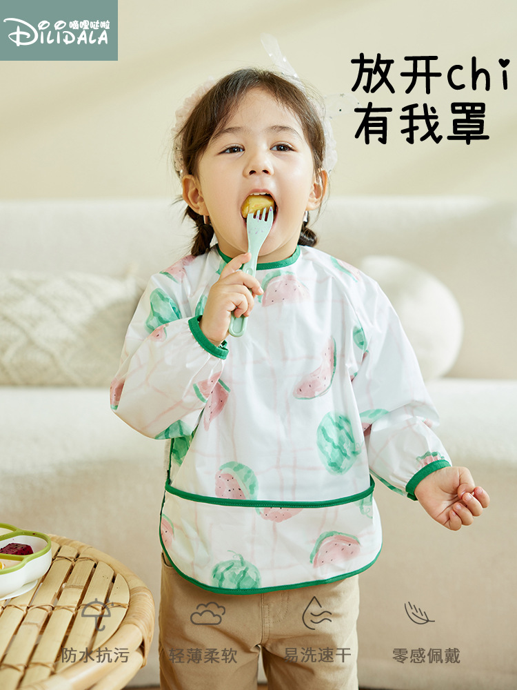 Детский фартук для еды, водонепроницаемый нагрудник с длинными рукавами для весны и лета, защита от грязи и загрязнений, детский нагрудник для детского сада, новая модель 2025 года для девочек.
