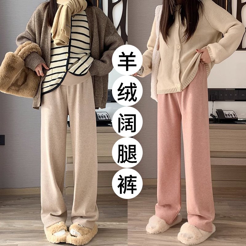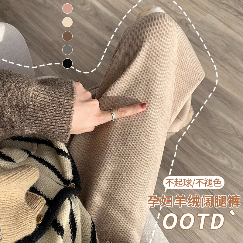Брюки для беременных, весна и осень, верхняя одежда, трикотажные широкие брюки, женские свободные Висячие повседневные Прямые брюки на флисовой подкладке, осень 2023