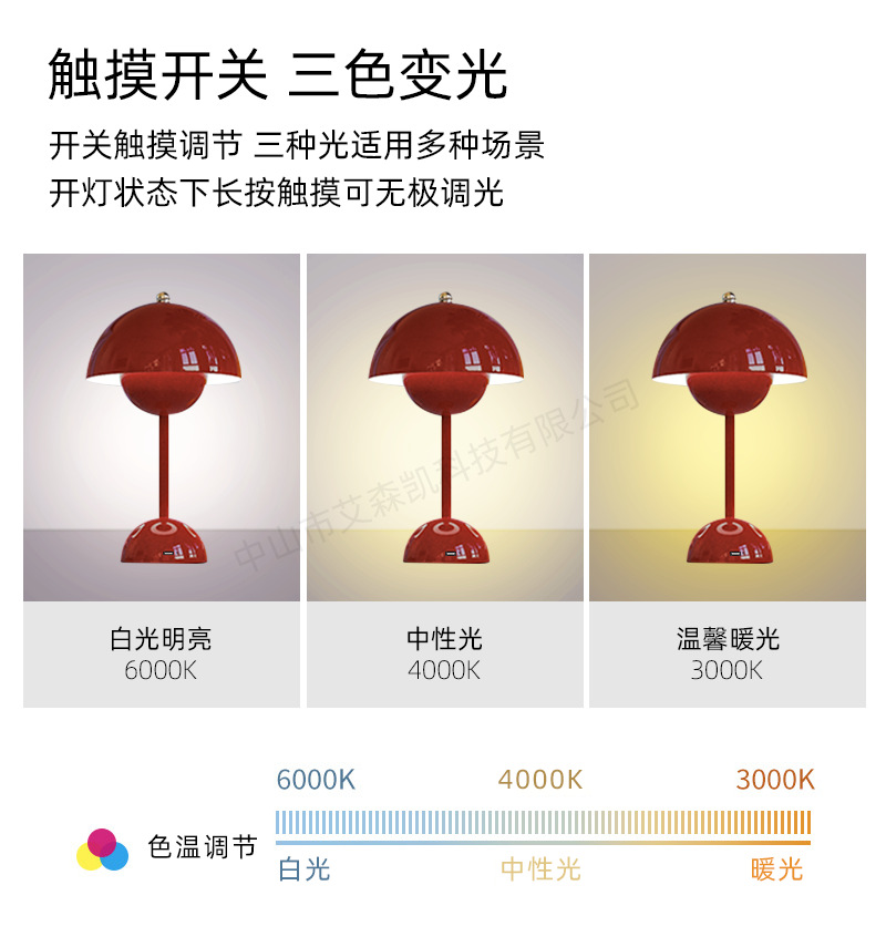Коснитесь, чтобы включить свет, коснитесь еще раз, чтобы переключить цветовую температуру.