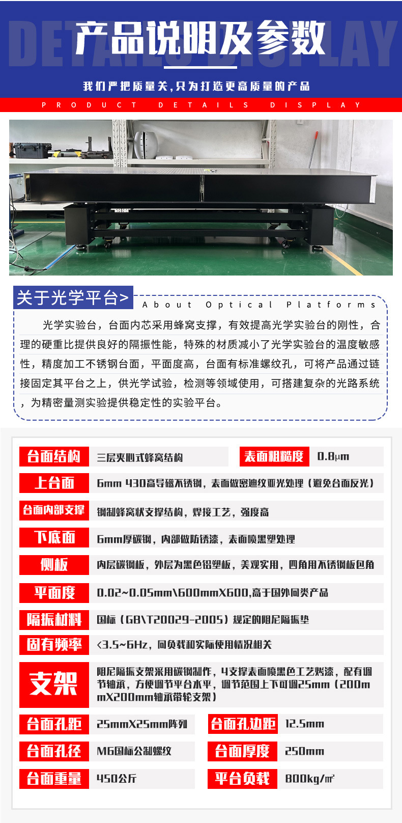Оптическая платформа с прецизионным демпфированием и вибрационной изоляцией; Платформа изоляции вибрации воздуха плавая оптически; Оптическая платформа сотового ядра; Не-магнитная оптическая платформа; Мраморная оптическая платформа; Оптическая макетная плата; Стойка инструмента; Затененная темная комната
