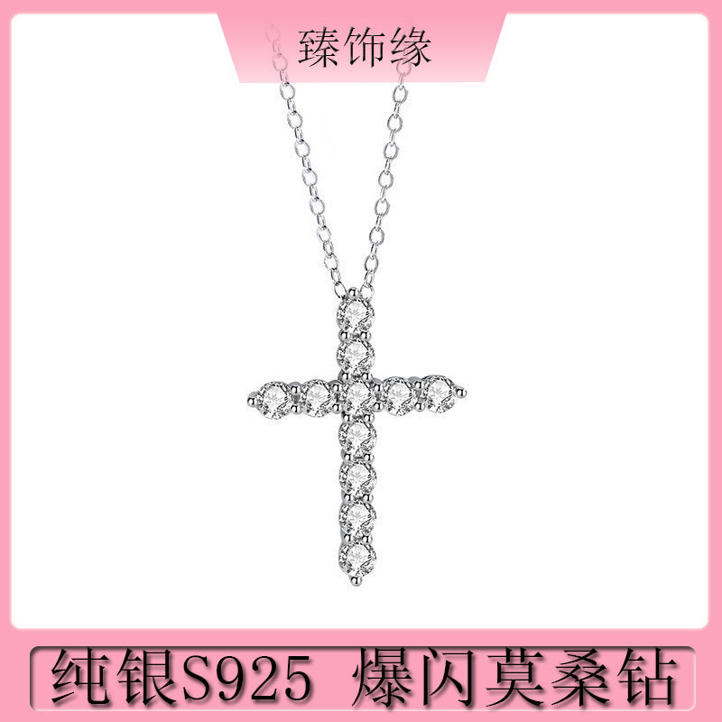 Стерлинговое серебро S925 Mosan Ожерелье с бриллиантовым крестом, трансграничное горячее Seiko, Высококачественная модная универсальная Алмазная инкрустация