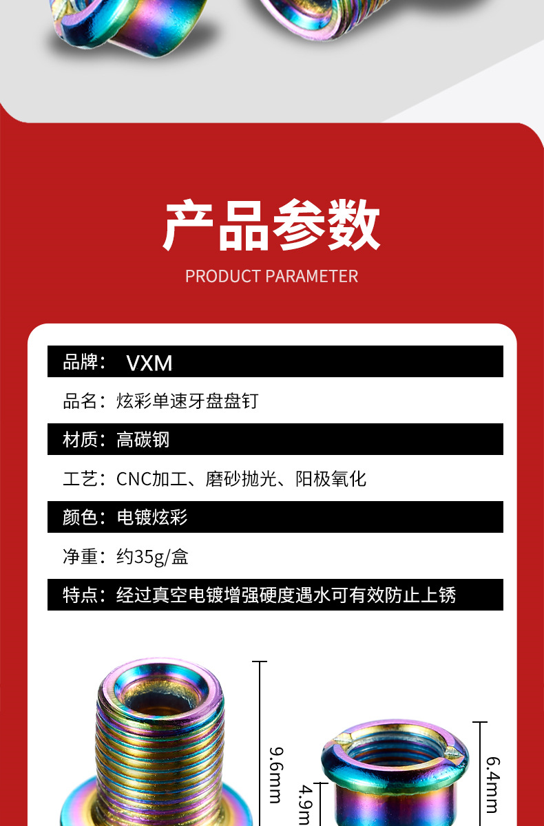 Горный велосипед, шоссейный велосипед, однодисковый гвоздь, складной автомобильный гальванический цветной стальной пластинчатый винт для гвоздя