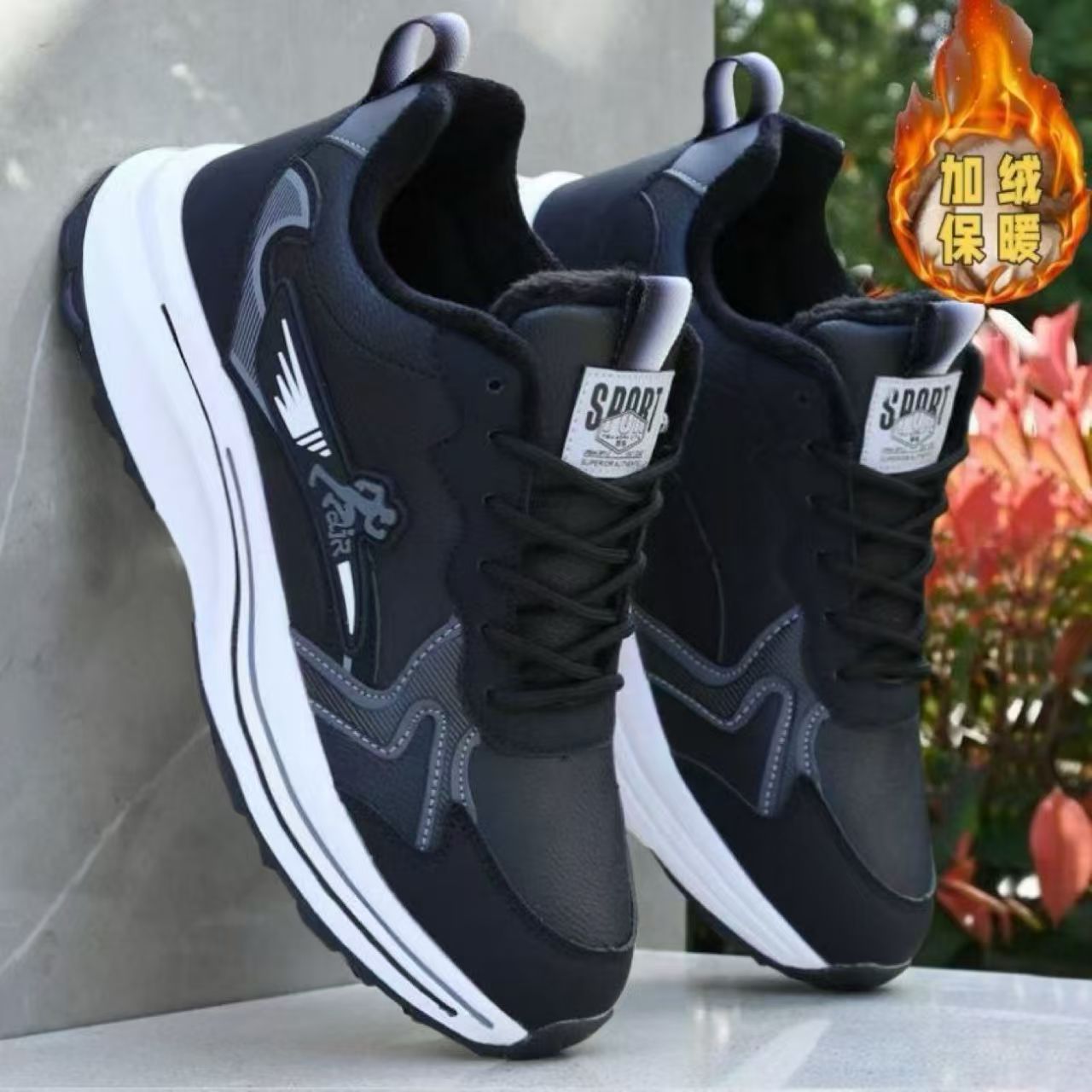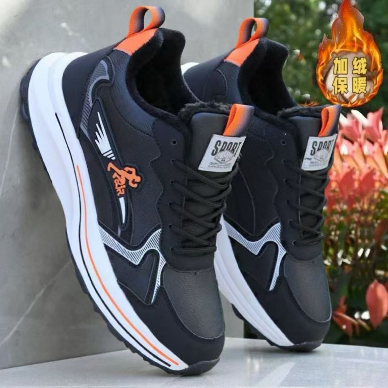 Баскетбольная обувь, мужская обувь, осень 2025 г., морозостойкая утолщенная теплая обувь на флисовой подкладке, кожаная водонепроницаемая спортивная обувь, повседневная хлопковая обувь