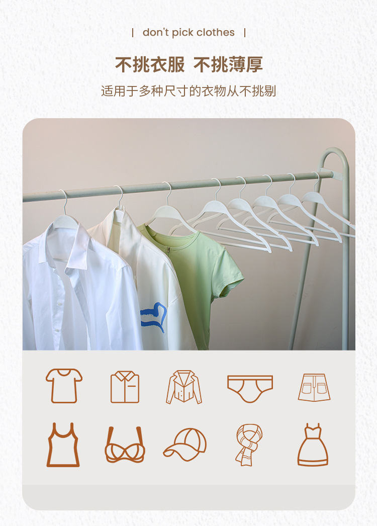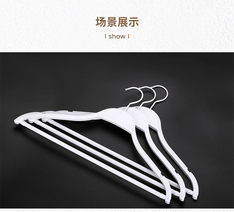 Белые пластиковые вешалки для домашнего использования, подходящие для мужской и женской одежды, детской одежды и вешалок для брюк для домашнего использования.