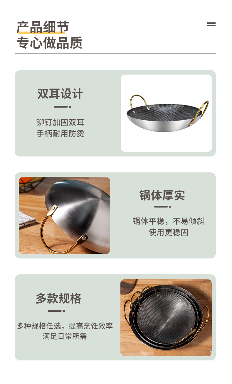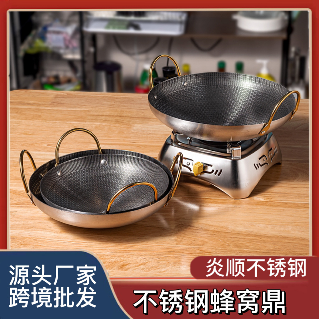 Вок из нержавеющей стали утолщенный сотовый дно бинауральный вок коммерческий спиртовой горшок маленький горячий горшок Ресторан сухой горшок бар Ding
