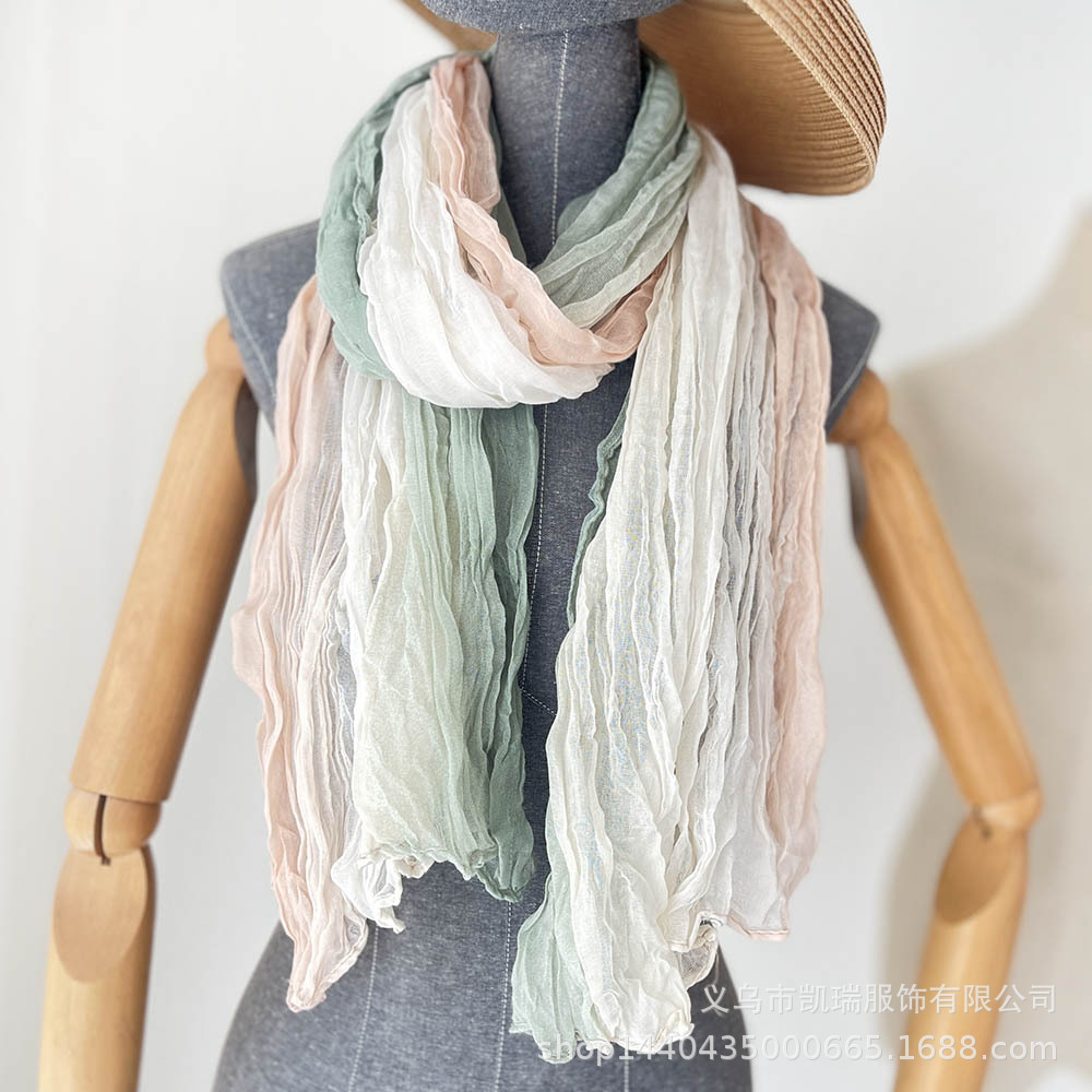 Новый шарф из хлопка и льна, ручной градиент, синий осенне-зимний шарф, винтажный Универсальный принт, Женская длинная Плиссированная шаль