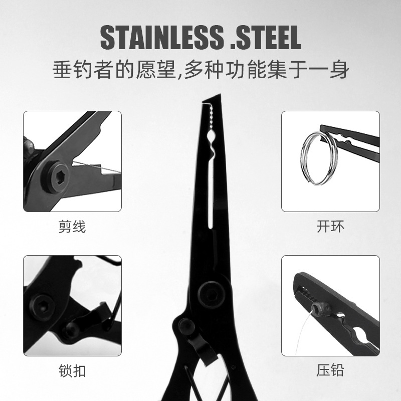 Новый открытый многофункциональный прямой рот Черные рыболовные щипцы с открытым кольцом для управления рыбой из нержавеющей стали Дорожные суб-щипцы рыболовные инструменты портативные