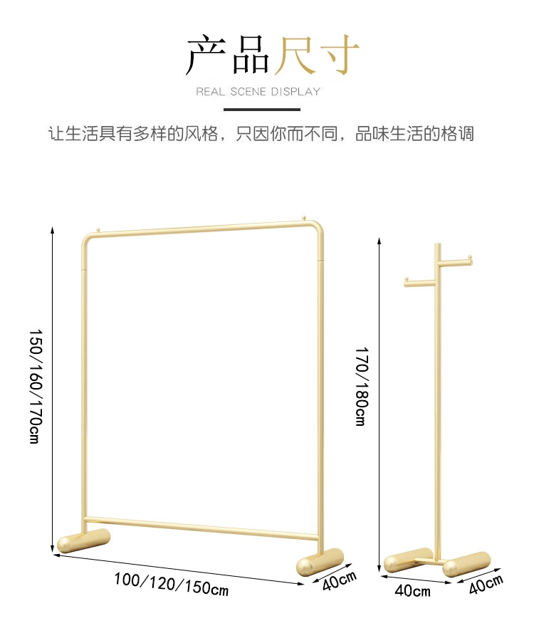 Золотая вешалка для выставки товаров магазина одежды Вешалка от пола до пола Полка магазина женской одежды Магазин детской одежды Специальная полка для одежды