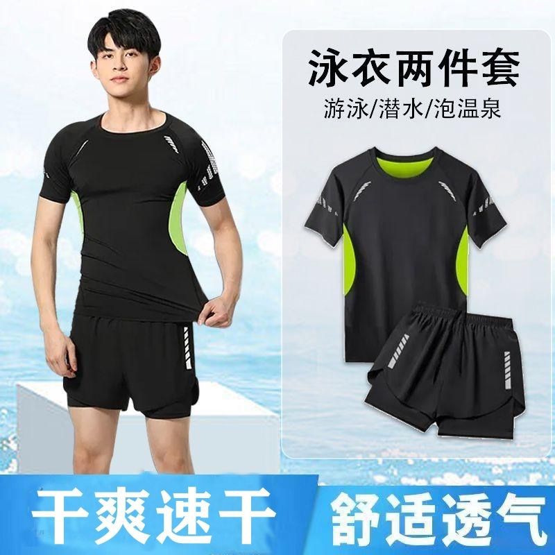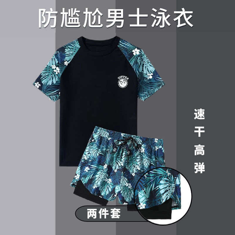 Новинка 2025 года, мужской купальник с защитой от солнца, мужской костюм с защитой от сбора, большие размеры, с короткими рукавами, дышащие, быстросохнущие, двухслойные плавки
