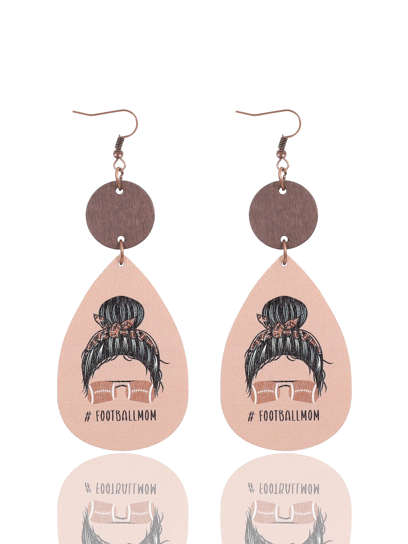 Легкие серьги из древесной стружки для трансграничной торговли, креативные женские серьги в форме капли в спортивном стиле, с возможностью индивидуализации логотипа в европейском стиле
