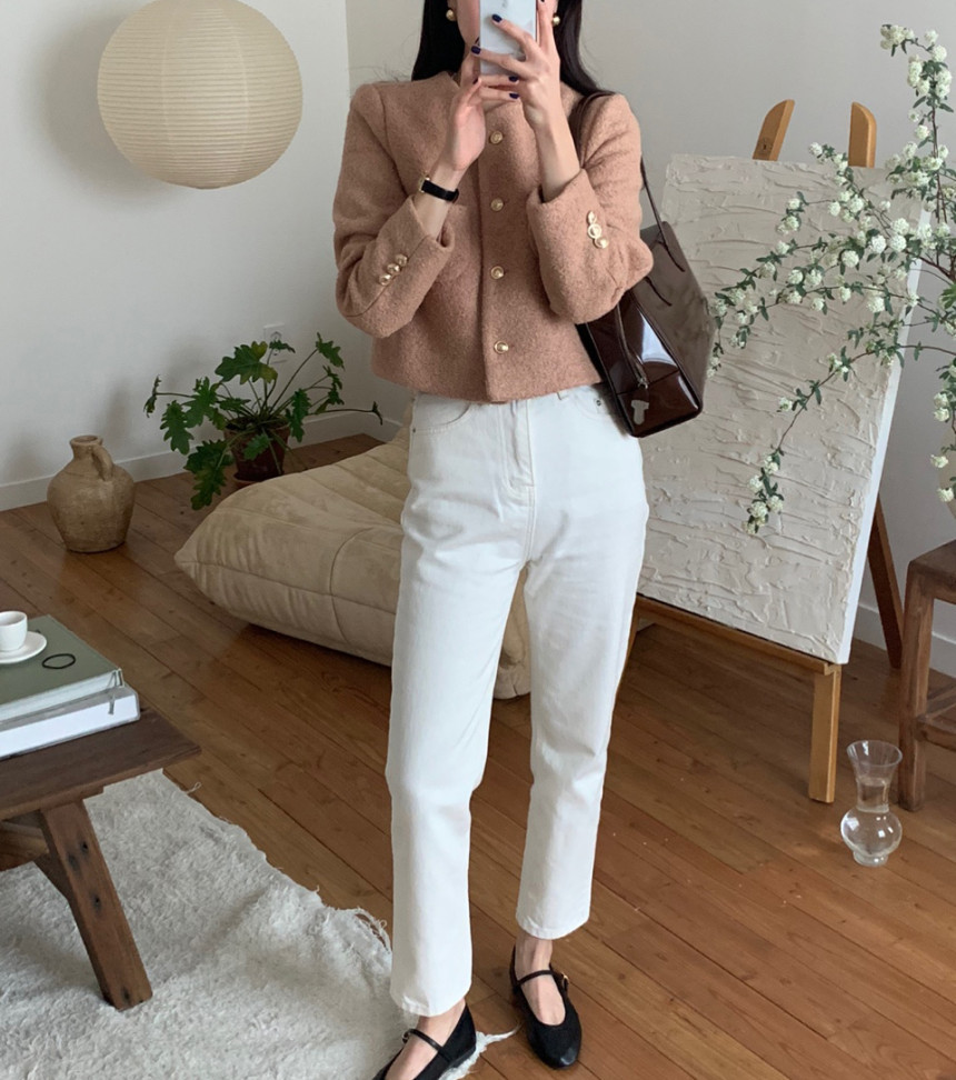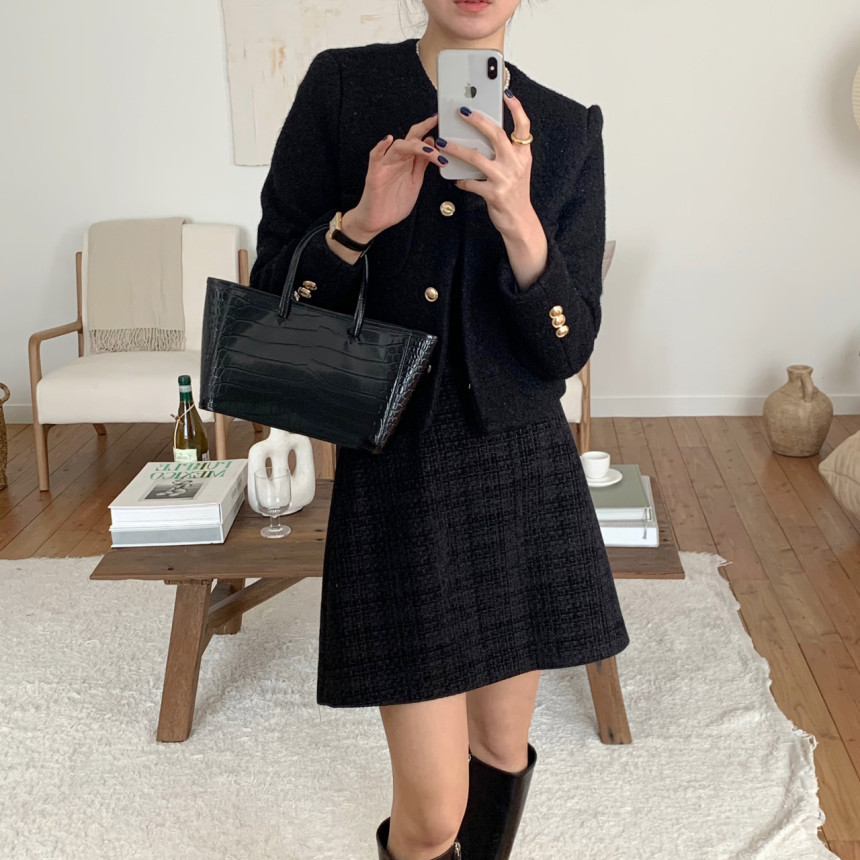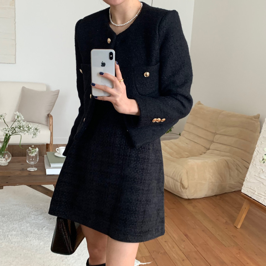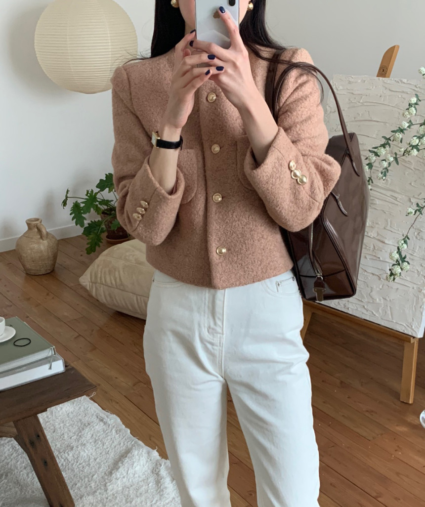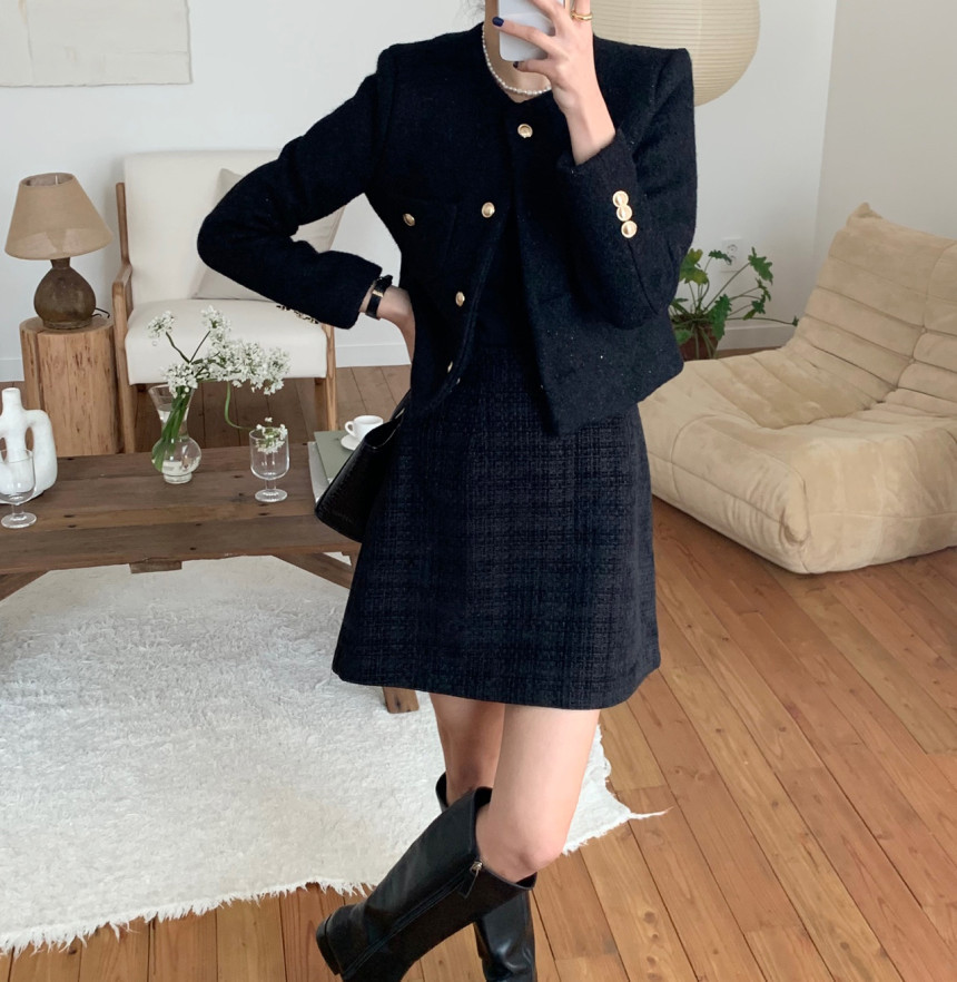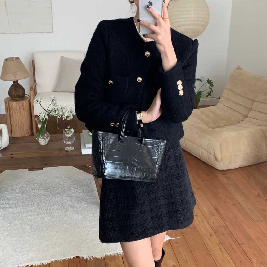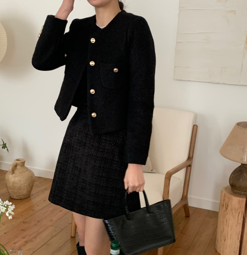 Новая корейская модель осенне-зимней коллекции 2025 года: короткая, приталенная шерстяная куртка для невысоких женщин с шикарным и элегантным дизайном.
