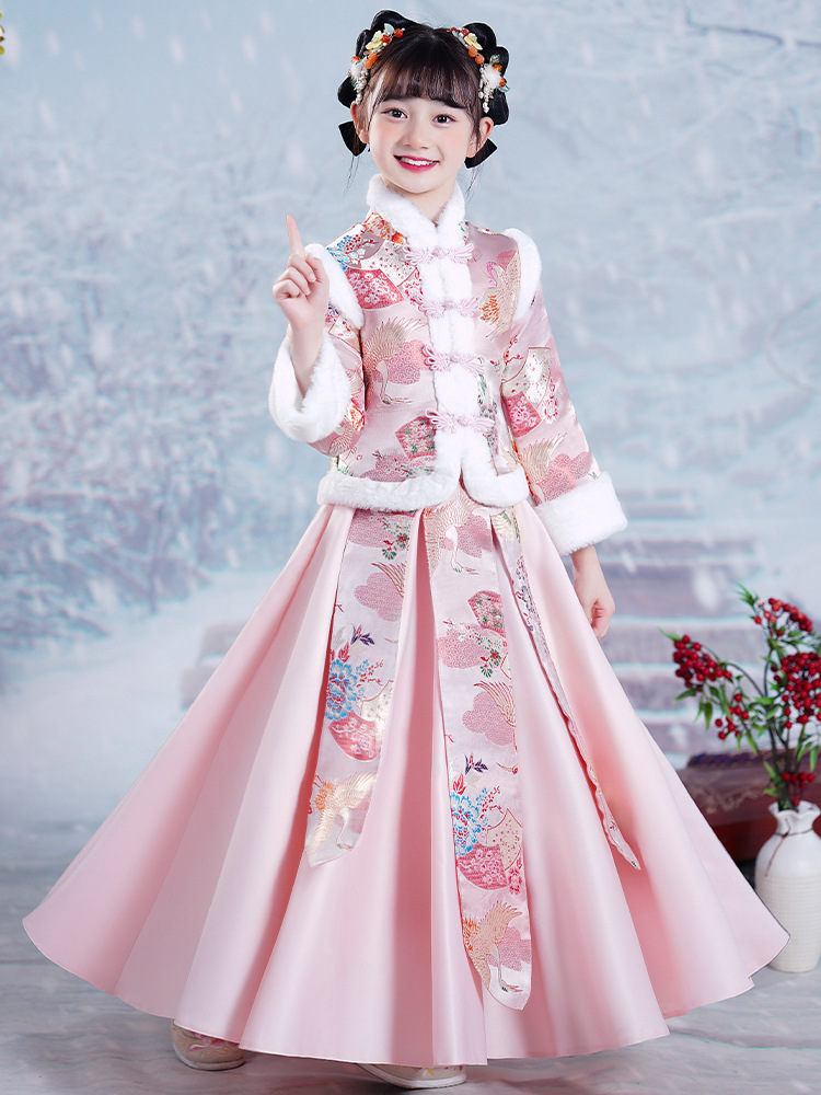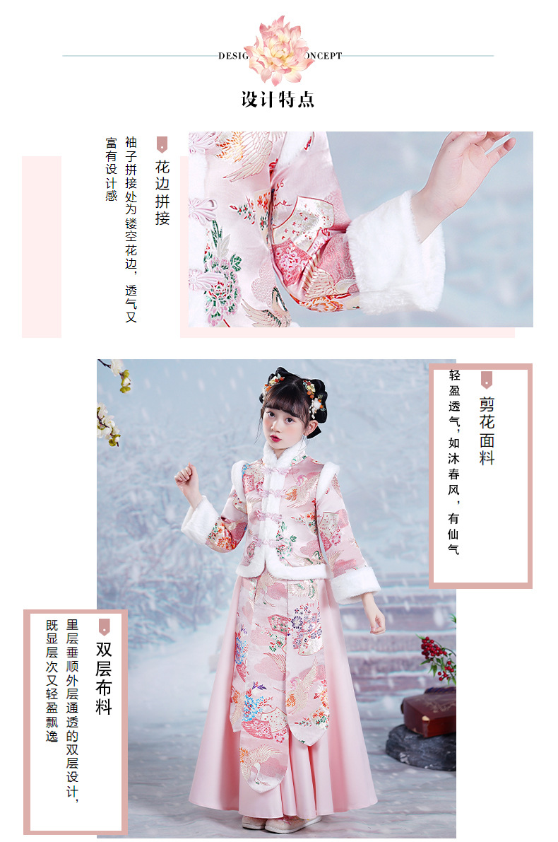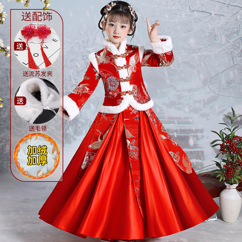 Детская Новогодняя одежда, зимнее осенне-зимнее античное Старинное платье суперфеи для девочек ханьфу, Утепленное зимнее платье на флисовой подкладке