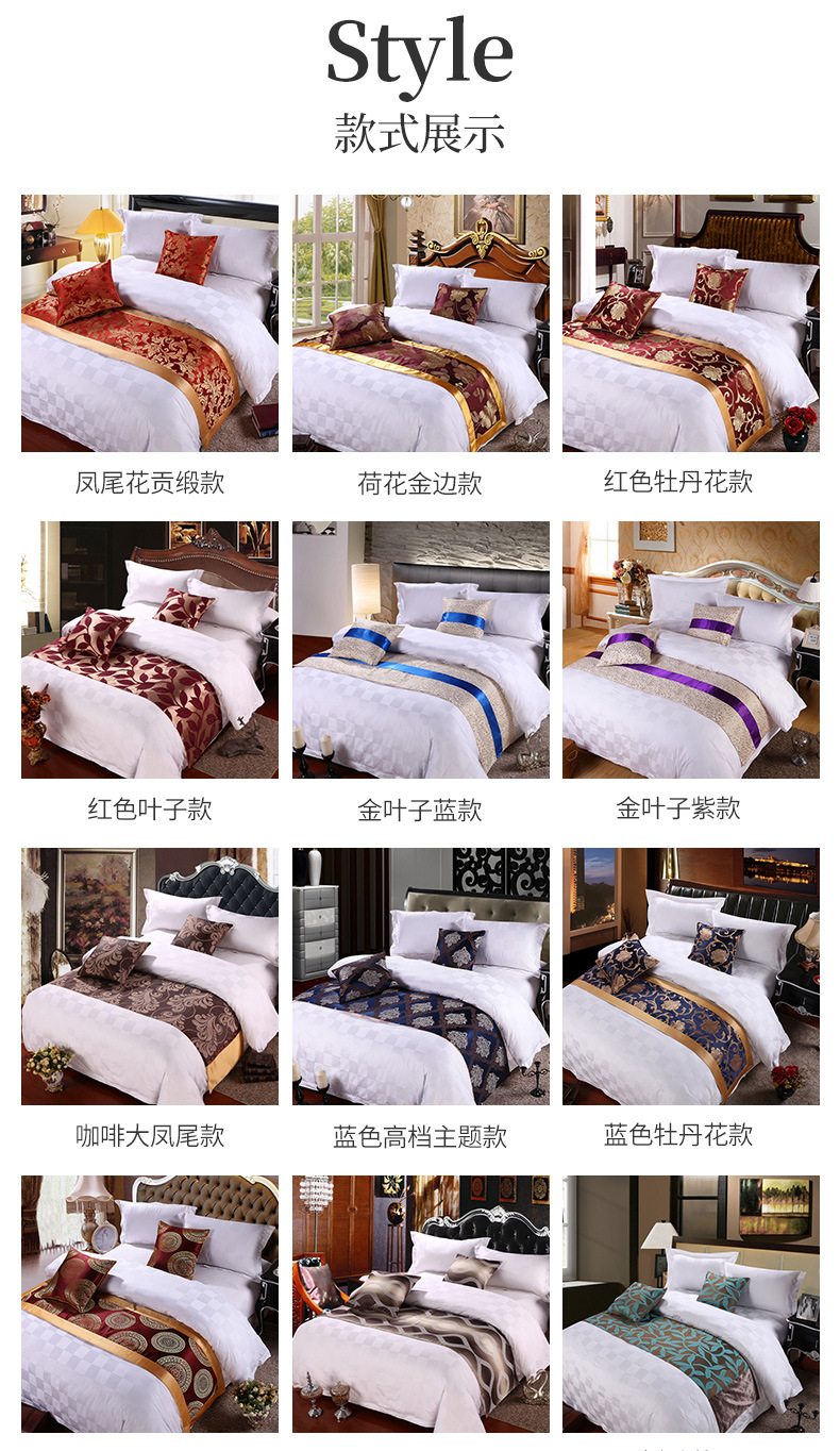 Star Hotel Кровать Конец Цветок Сатин Кровать Конец Полотенце Проживание в семье Отель Сплошной цвет Хлопок и лен Кровать Флаг Постельные принадлежности Кровать Конец Мат