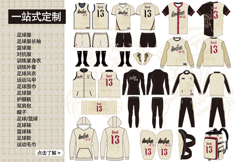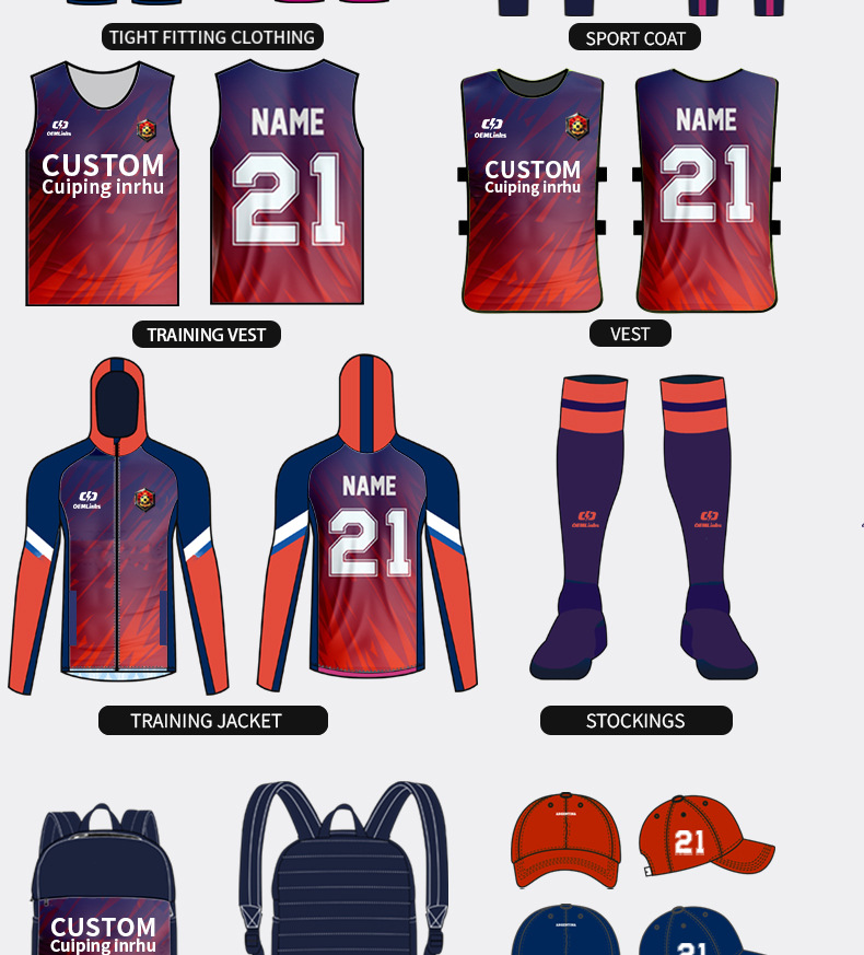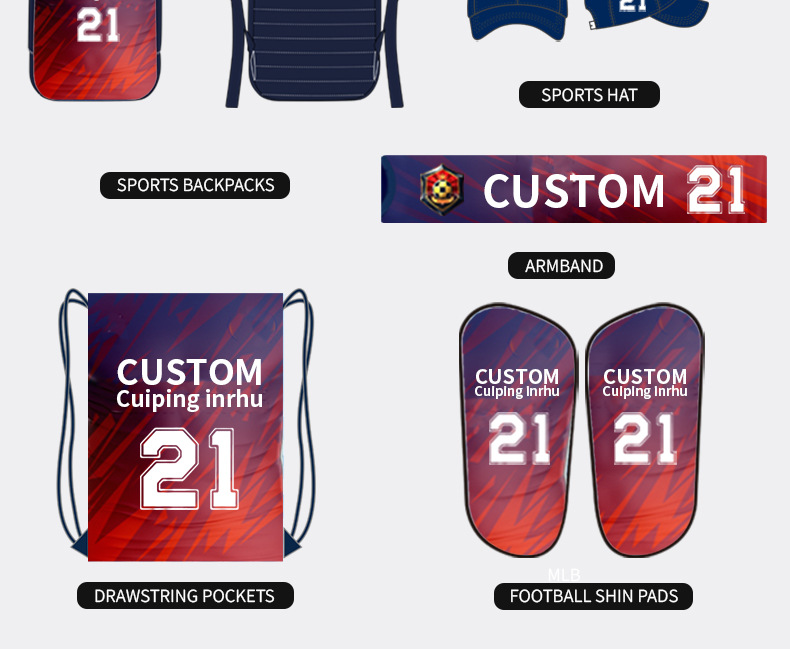 Футбол Униформа; Верх с воротником ПОЛО; С парой одежды; Одежда для борьбы с конфронтацией без бретелек; Колготки; Тренировочный костюм; Тренировочное пальто; Защита ног; Карман на шнурке; Повязка; Рюкзак; Носки; Свободный дизайн