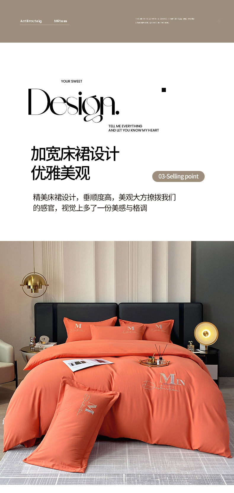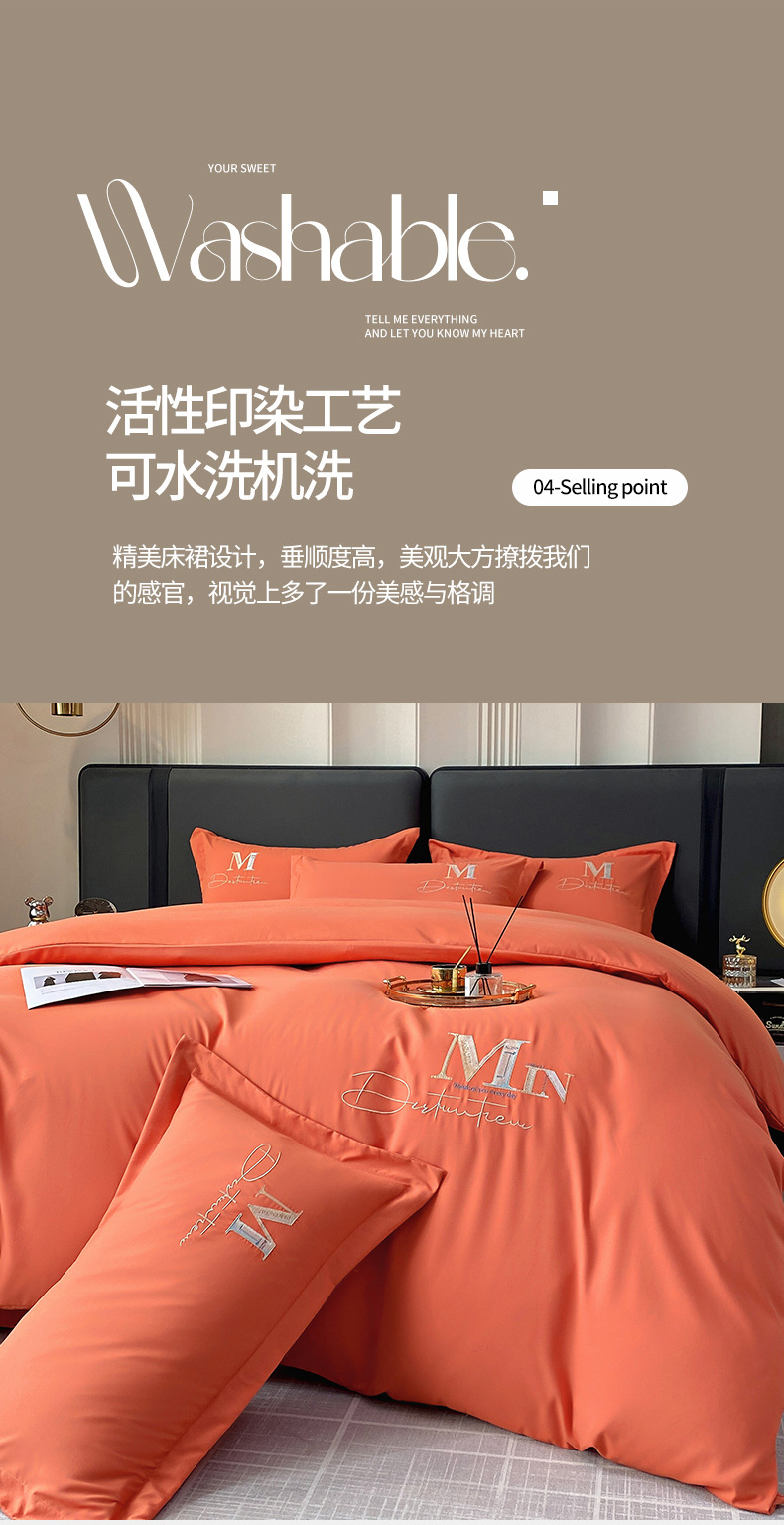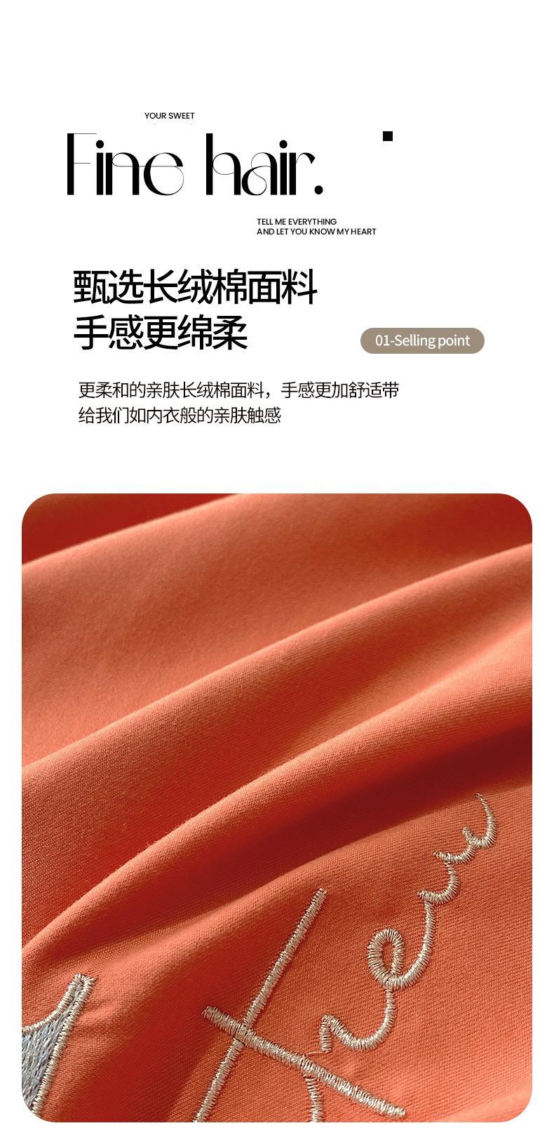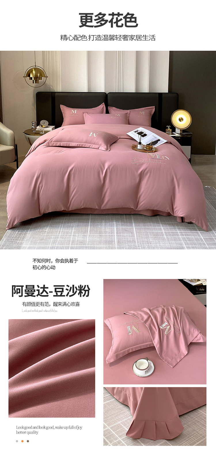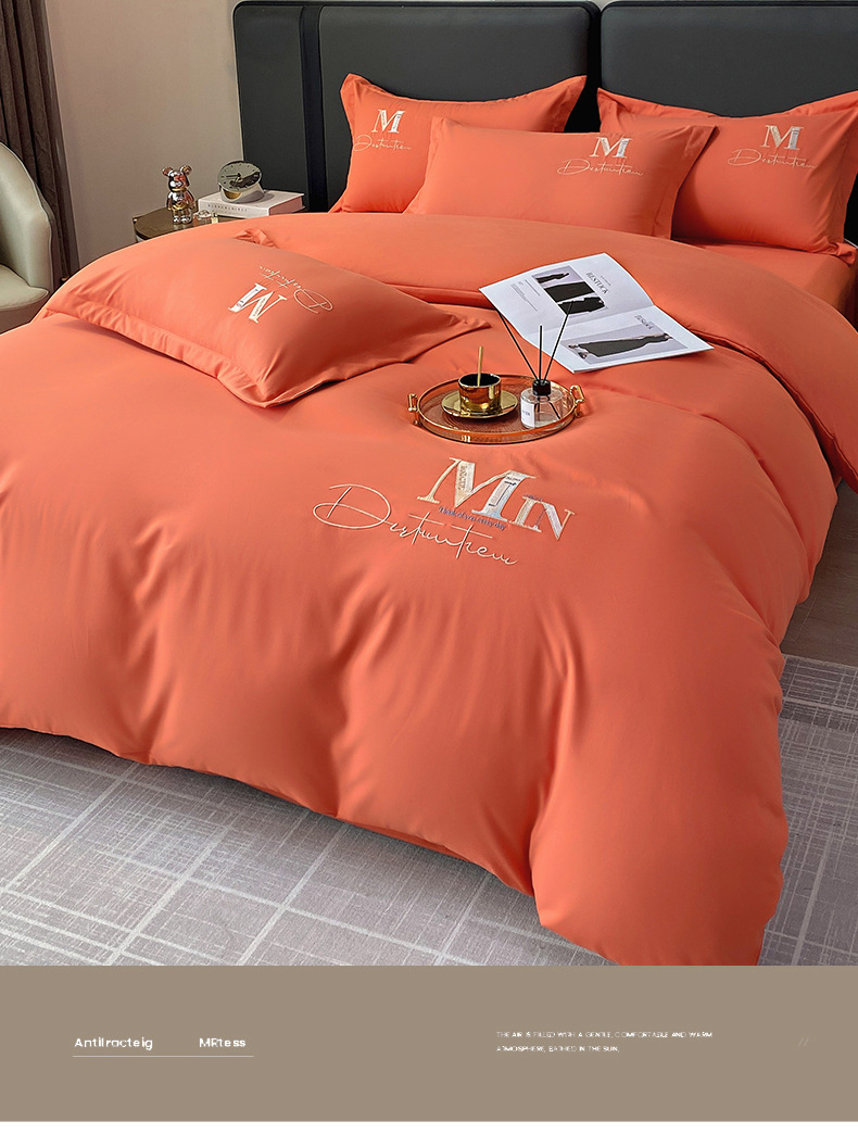 Однотонный комплект из четырех предметов из длинноволокнистого хлопка с вышивкой: простыня, пододеяльник, наволочки (осень-зима), простой комплект из трех предметов: простыня, пододеяльник, наволочки, теплый, с вышивкой, из начесанной ткани.