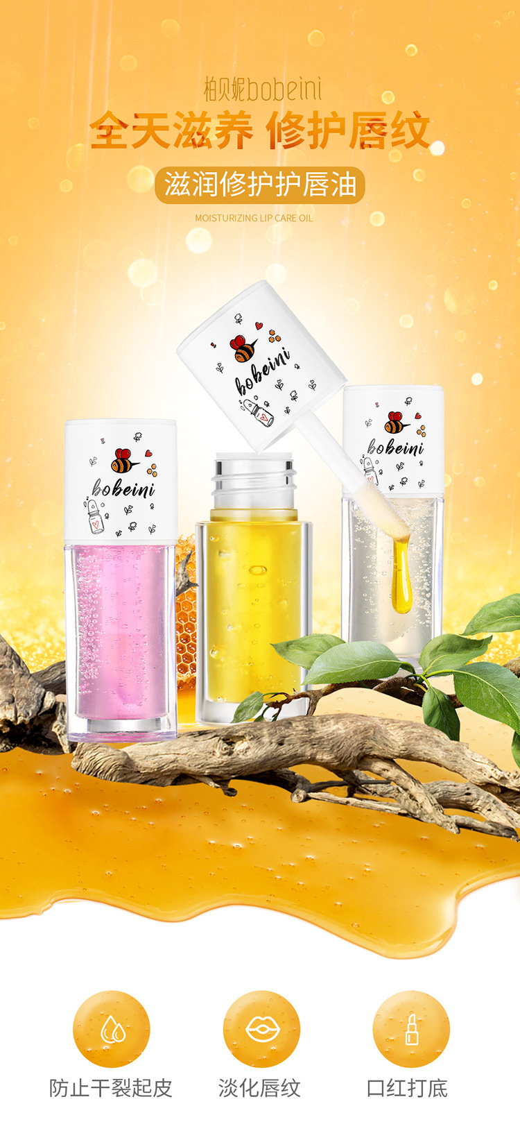 Bobeini Honey Lip Glaze оптом молочный аромат для беременных женщин и детей масло для губ универсальный уход увлажняющий бальзам для губ