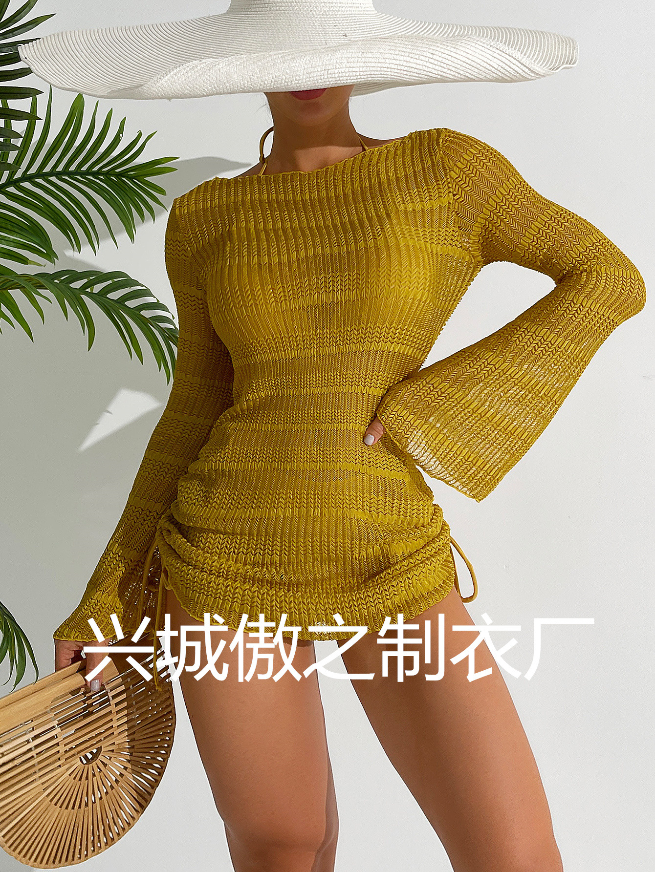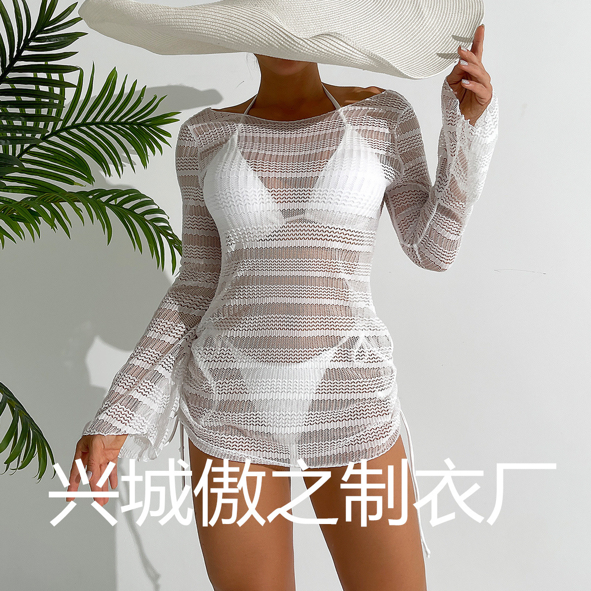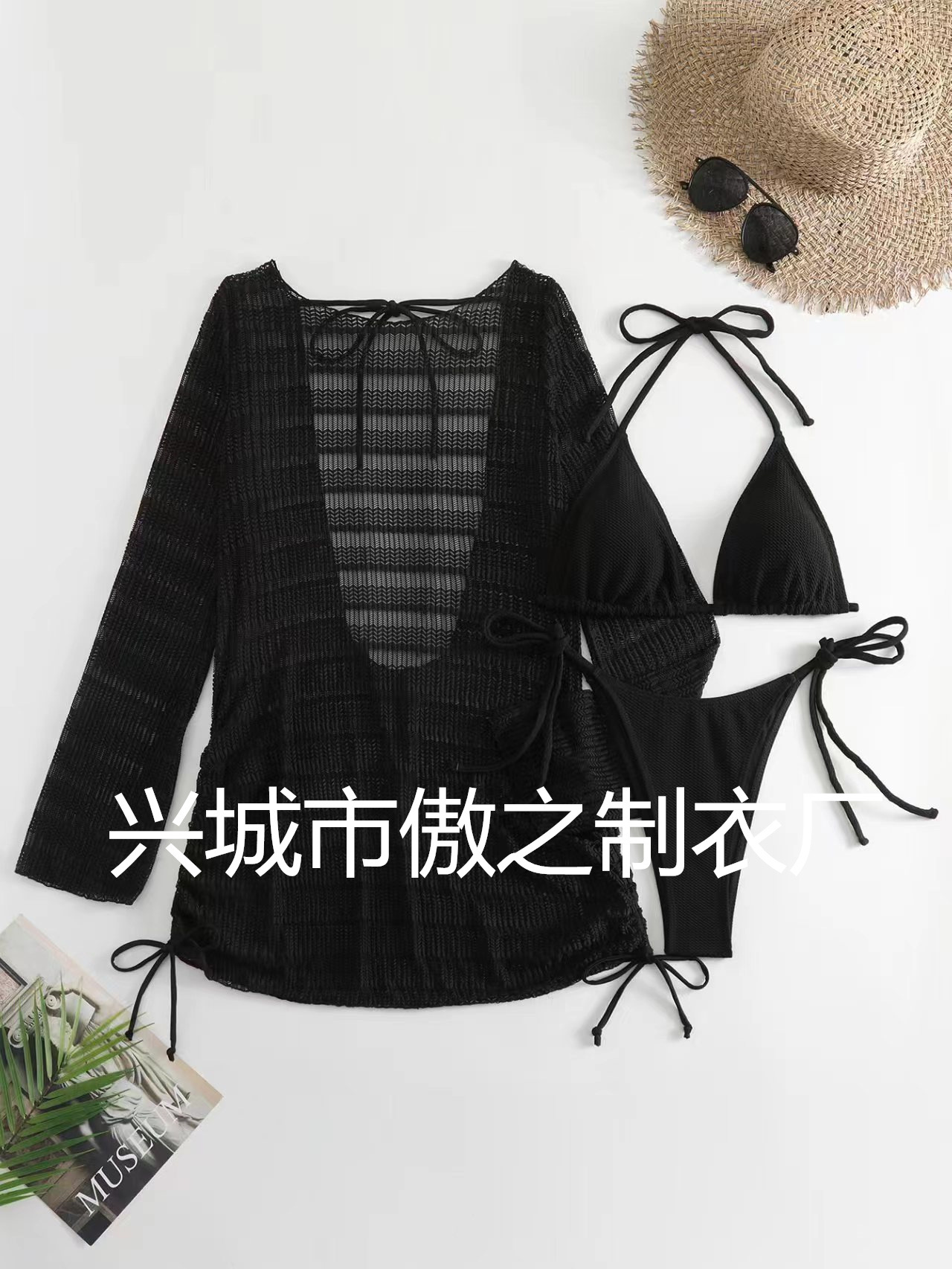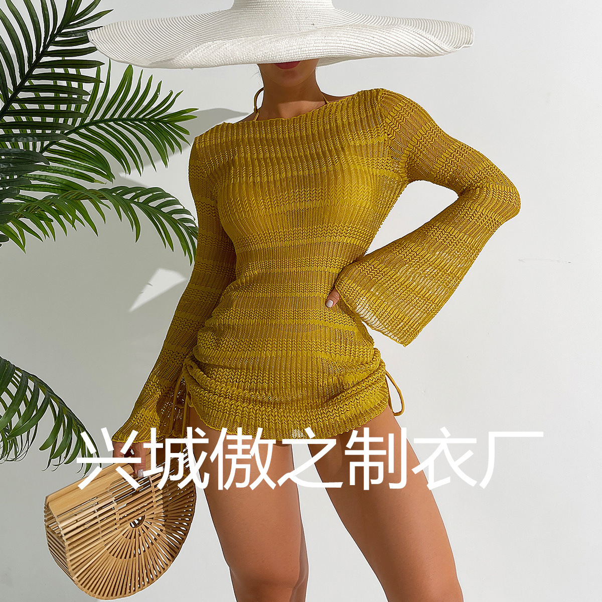 Европейская и американская трансграничная Новинка 2024 года, женский купальник-бикини из специальной ткани с подвесным воротником на шнуровке, пляжный Модный Купальник