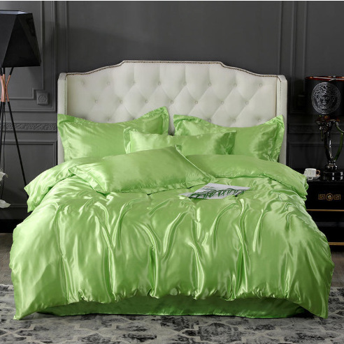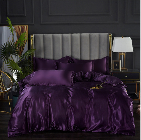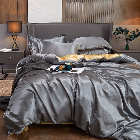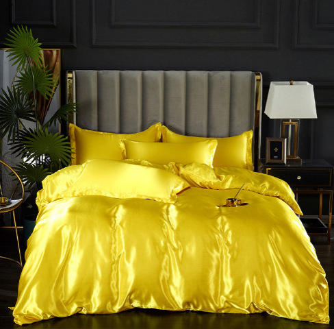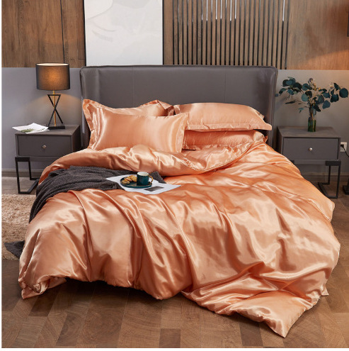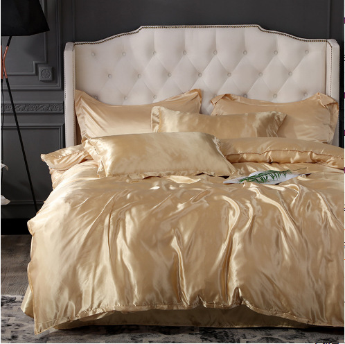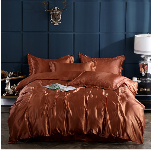 Однотонное постельное белье из искусственного шелка AliExpress Amazon трансграничная Европейская и американская односпальная простыня, пододеяльник, наволочка, комплект из четырех предметов