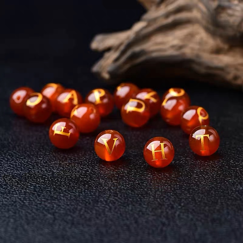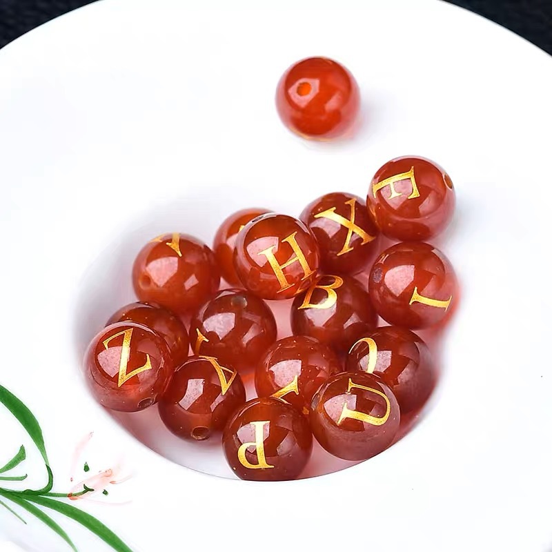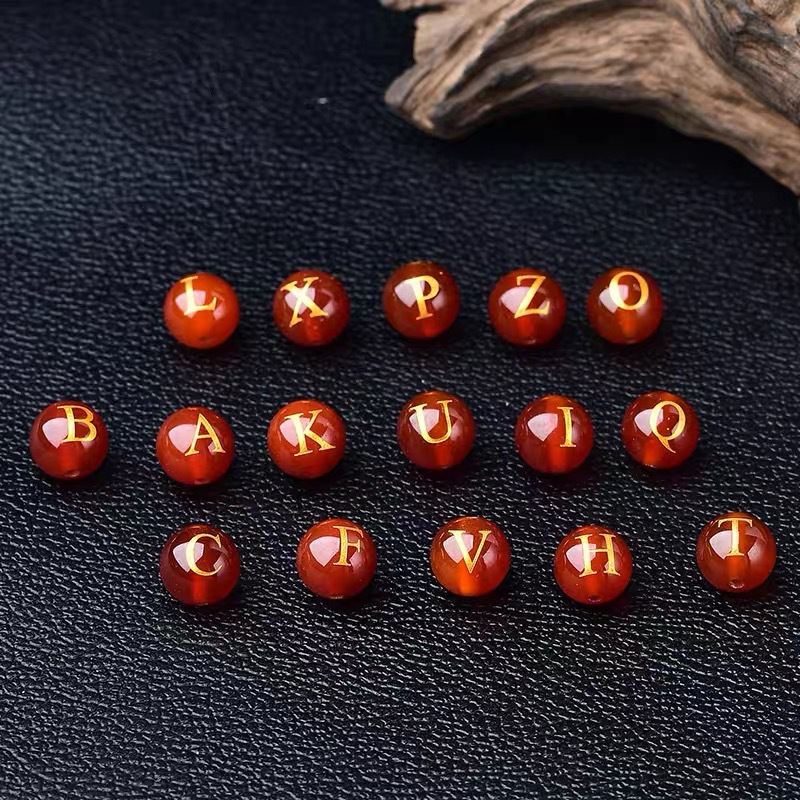 Оптовая продажа живописный красный Агат свободные бусины Горячее тиснение надписи 26 букв DIY ювелирные изделия Полуфабрикаты аксессуары Агат Круглые Бусины